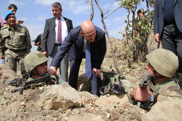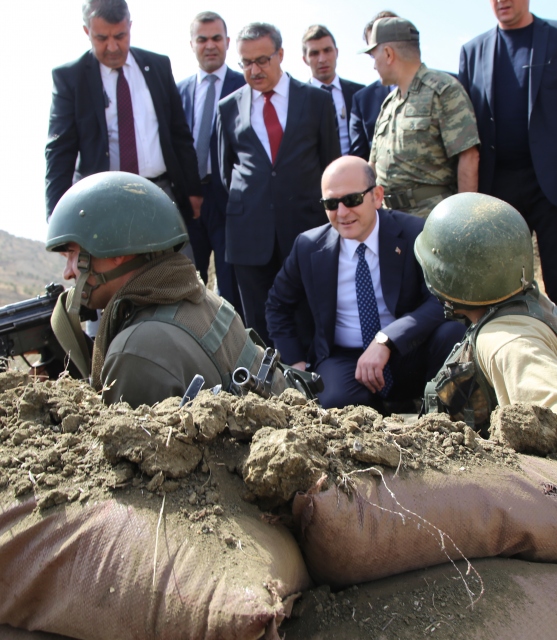 İçişleri Bakanı Süleyman Soylu, Yapımı süren Şırnak-Van karayolunda güvenliği sağlayan askerlere PKK'lı teröristlerce düzenlenen saldırıda şehit düşen 6 askerin vurulduğu bölgede incelemelerde bulundu. Bakan Soylu, mevzilerde nöbet tutan askerlerle tek tek ilgilenerek onlarla sohbet etti.