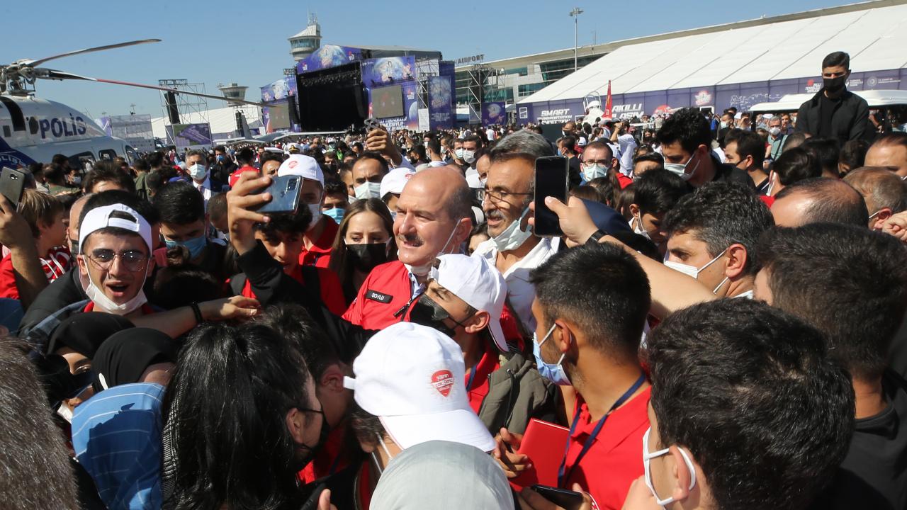 Soylu, İçişleri Bakanlığı standının önünde Yarın Çok Genç Olacak projesi kapsamında bakanlığın misafiri olarak Ağrı, Şırnak, Iğdır, Ardahan ve Tunceli`den festivale gelen öğrencilerle buluştu.