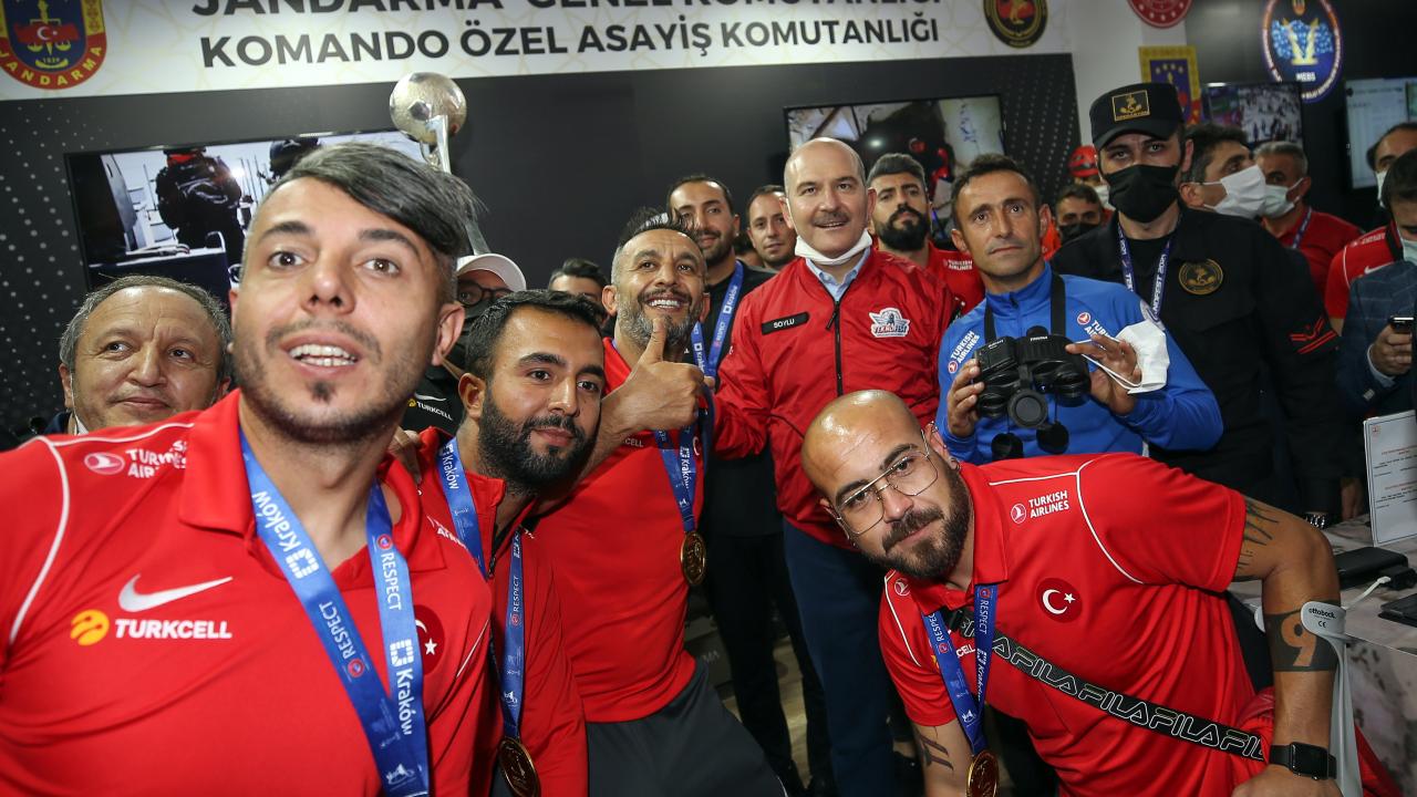 Bakan Soylu, bakanlığın standında Avrupa şampiyonu olan Ampute Milli Futbol Takımı`yla da fotoğraf çektirdi.