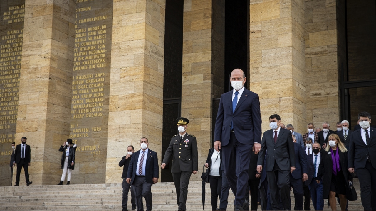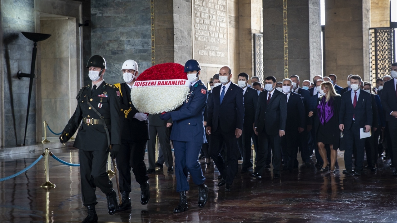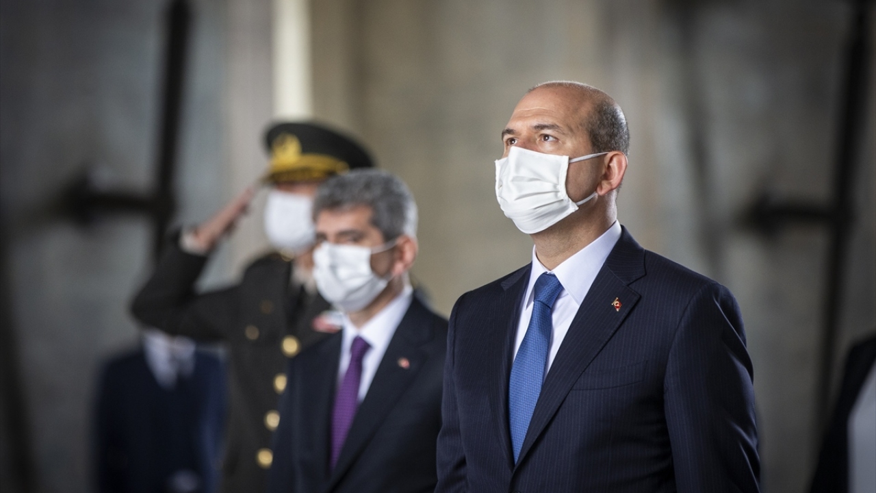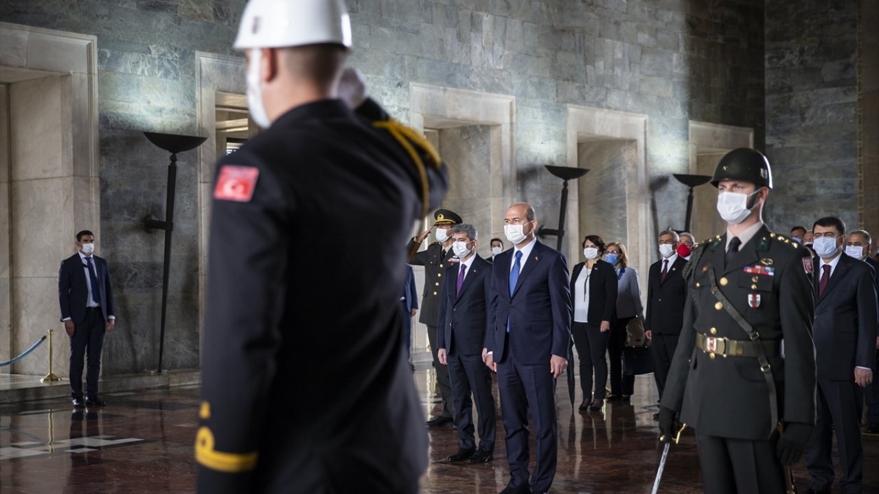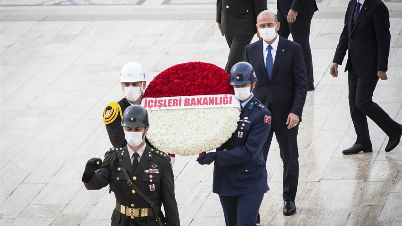 Soylu`nun mozoleye çelenk bırakmasının ardından saygı duruşunda bulunuldu, İstiklal Marşı okundu.