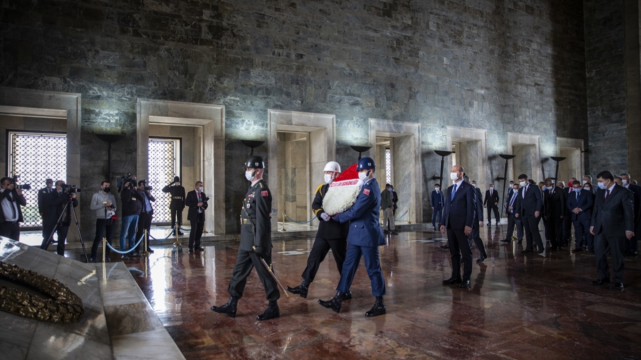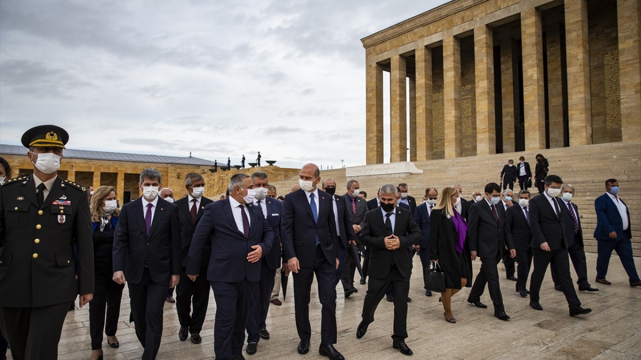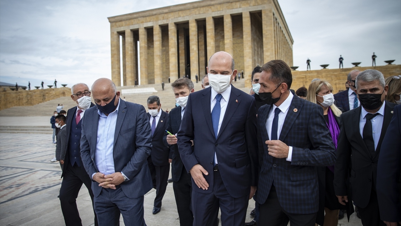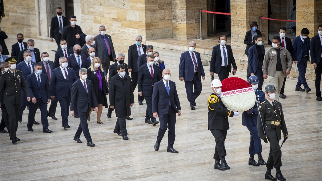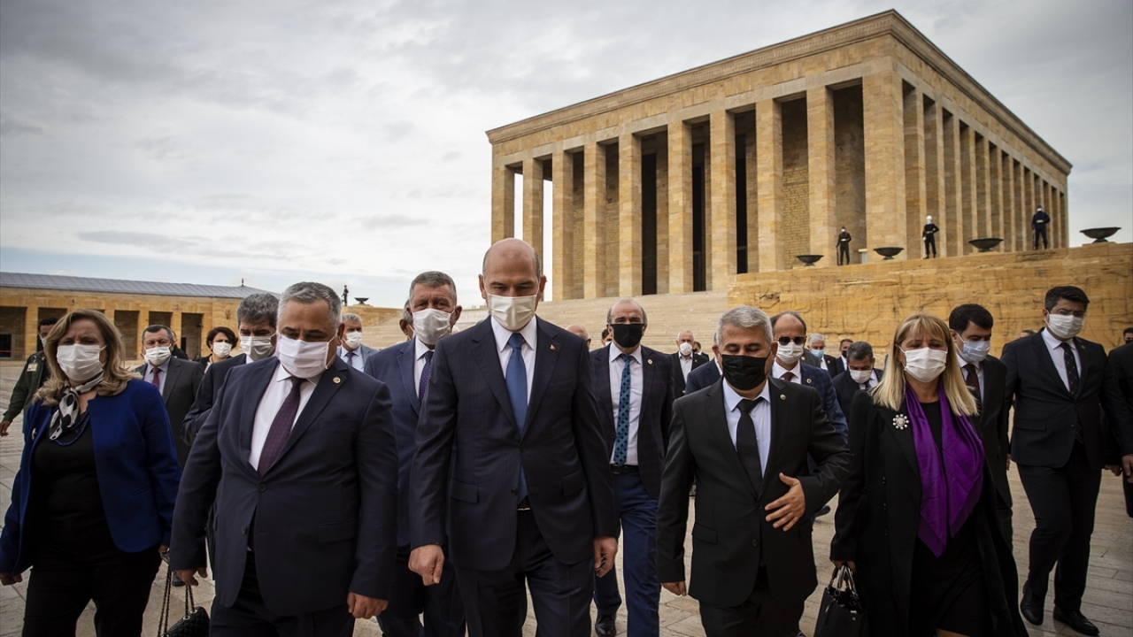Soylu`nun mozoleye çelenk bırakmasının ardından saygı duruşunda bulunuldu, İstiklal Marşı okundu.