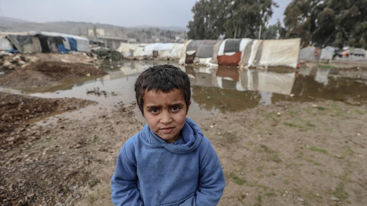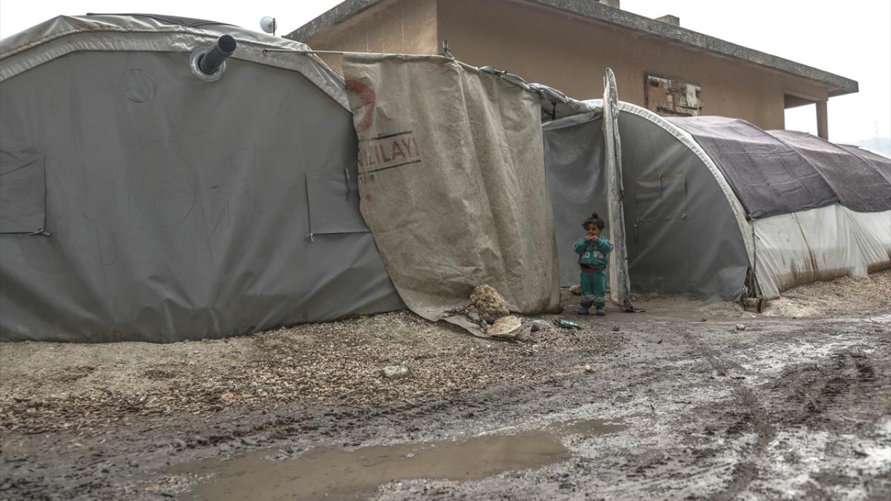 Suriye'nin İdlib ilinde Esed rejimi ve destekçilerinin saldırıları sonucu yerlerinden edilen sivillerin sığındığı kamplarda, yağışlarla taşan lağım suları çocukları hasta ediyor.