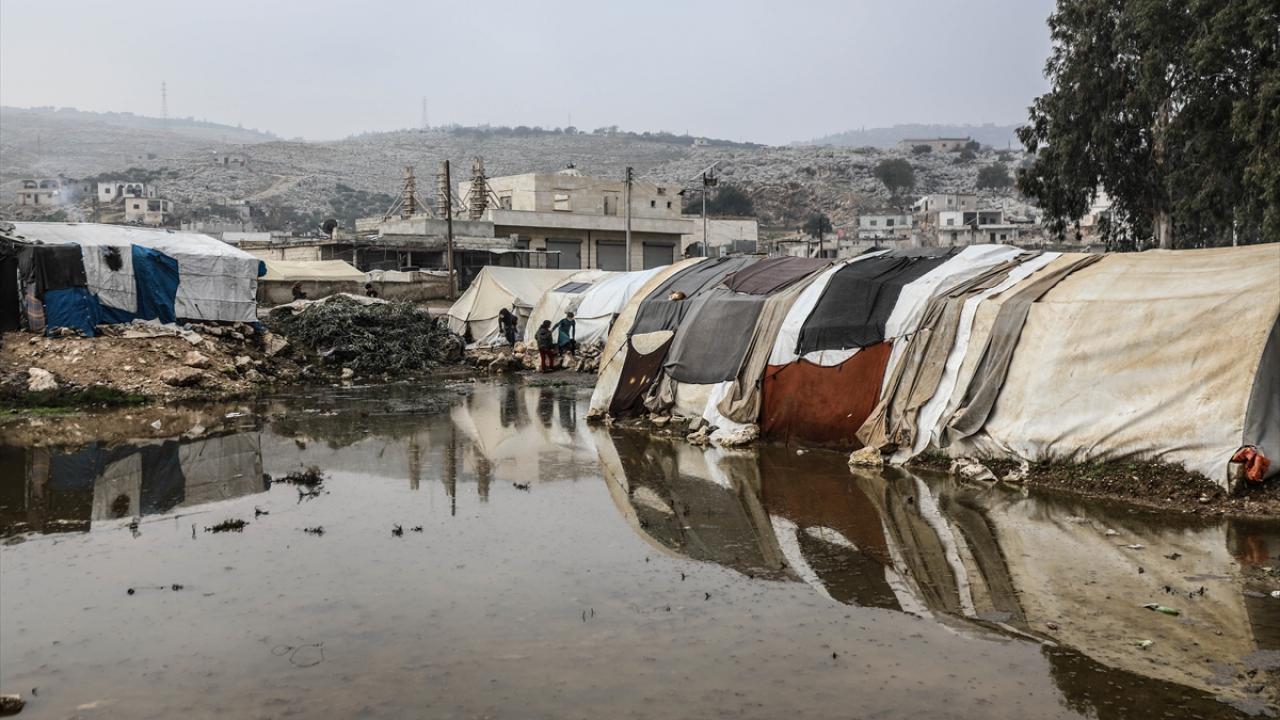 İdlib`in batısındaki Bala`a`daki kamp sakinlerinden Muhammed Added, yağmur suyunun kanalizasyon suyuyla karışarak çadırların arasına taştığını söyledi.