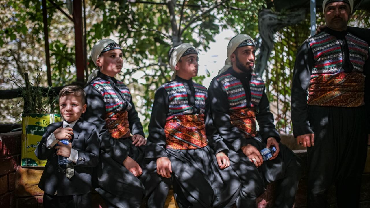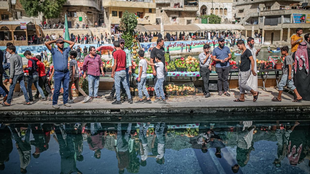 Suriye'nin İdlib iline bağlı Darkush beldesinde çeşitli nar türleri ve yöresel yemeklerin sergilendiği 5'inci nar festivali yapıldı.