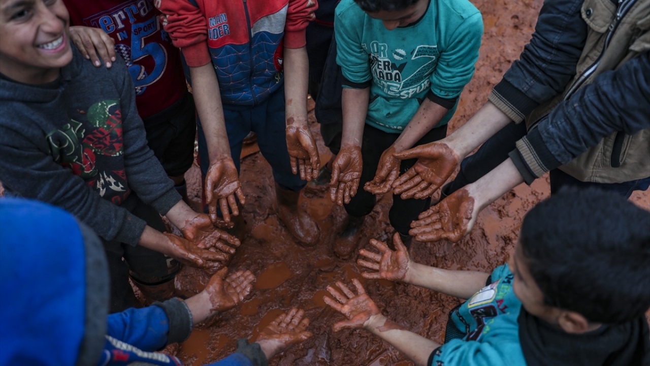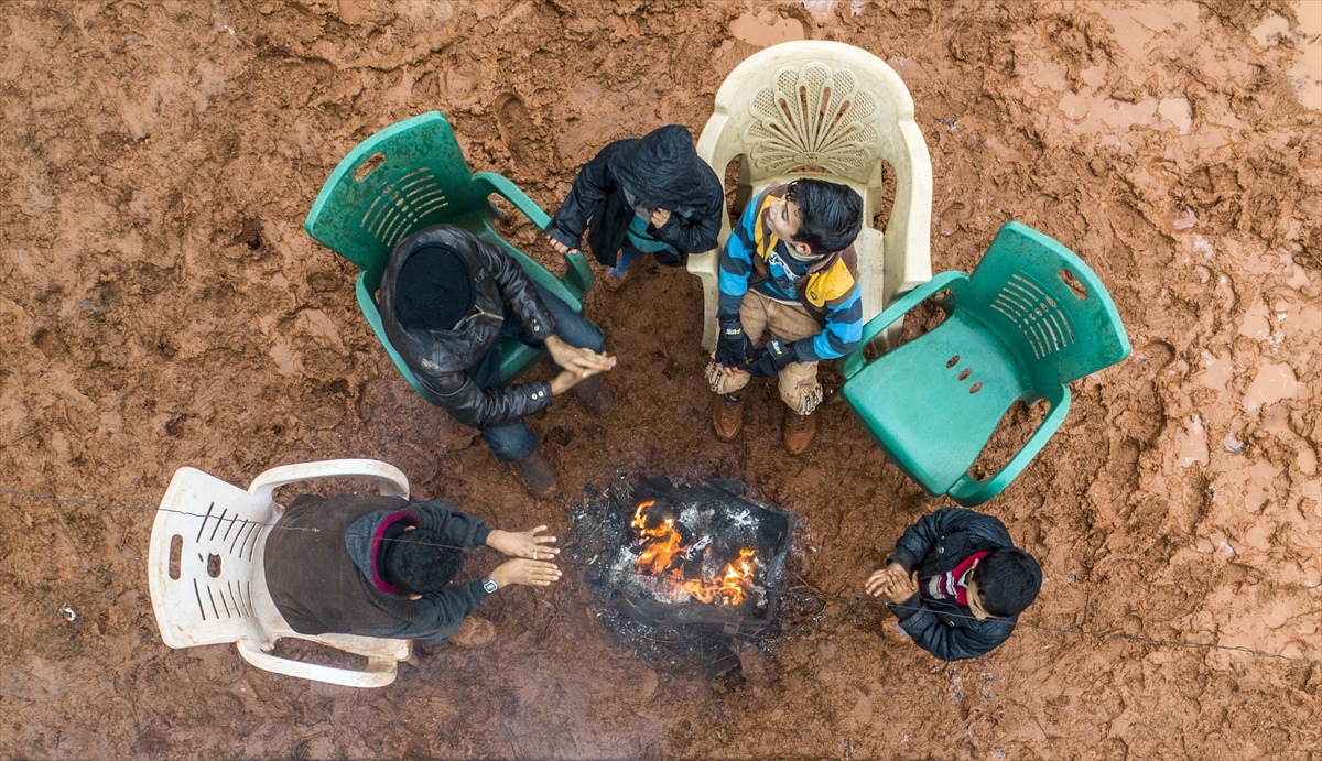 Beşşar Esed rejimi ve Rusya'nın saldırıları nedeniyle İdlib kırsalına göç eden ailelerin çocukları, soğuk ve çamurun esir aldığı kamplarda yaşıtlarıyla oyun oynayıp vakit geçirmeye çalışırken, çadırlarına döndüklerinde ısınabilmeyi arzuluyor.