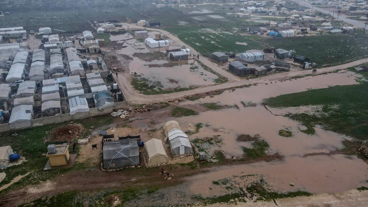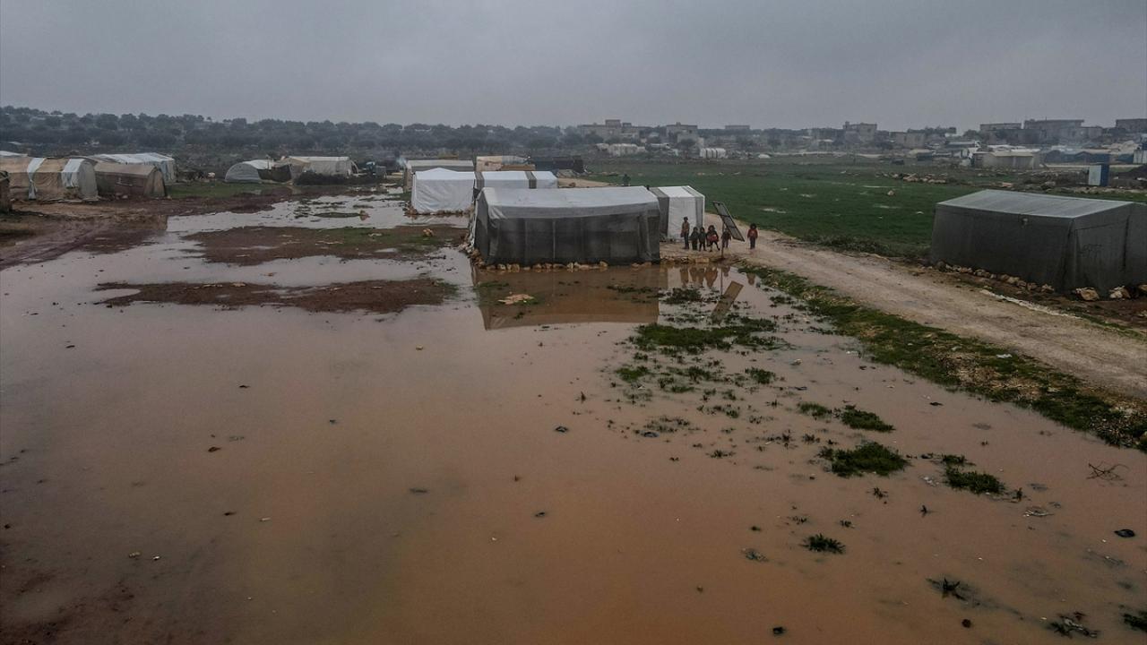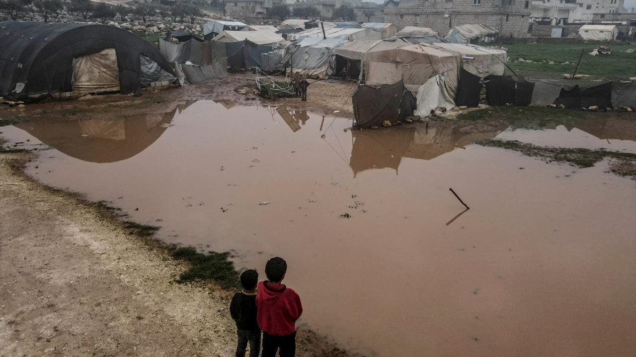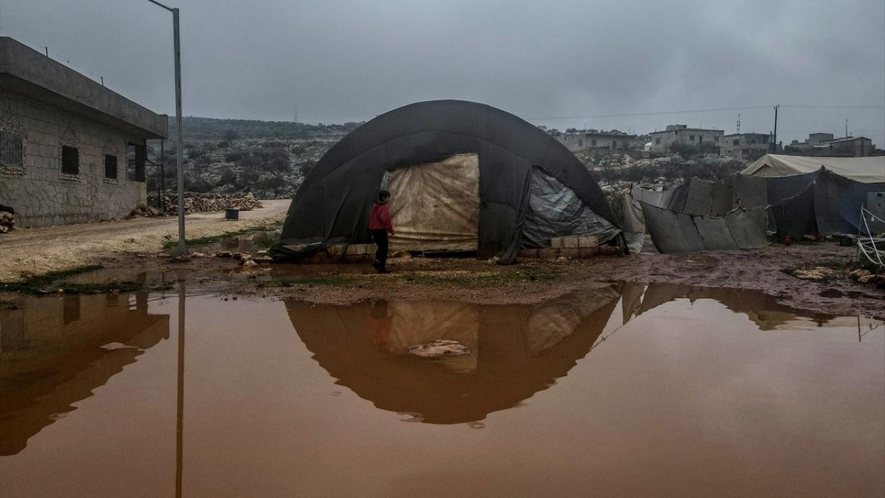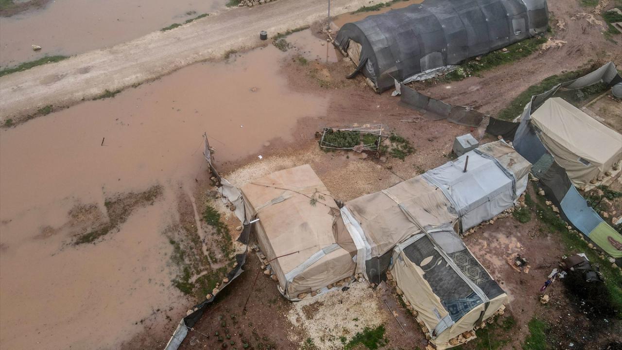 Suriye'nin kuzeybatısındaki İdlib ilinde son günlerde yoğun sağanak nedeniyle ıslanan, su alan ve barınılmaz hale gelen kamp çadırlarında yaşayanların hayatı daha da zorlaştı.
