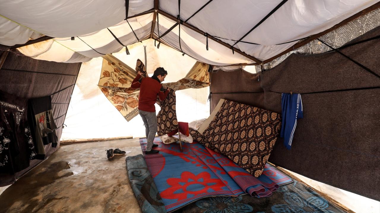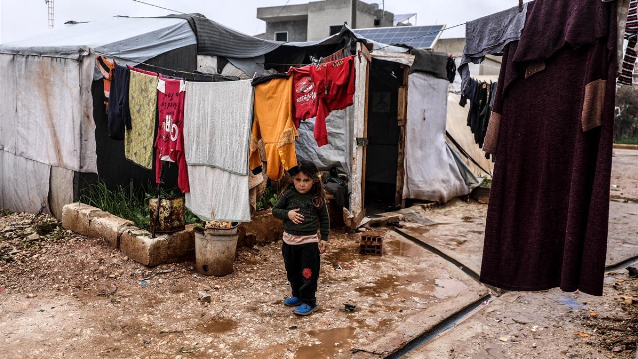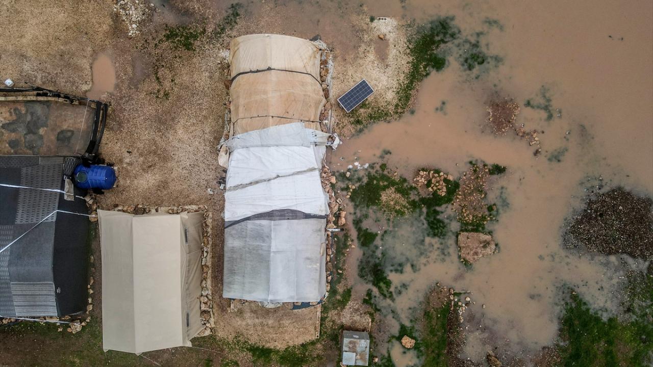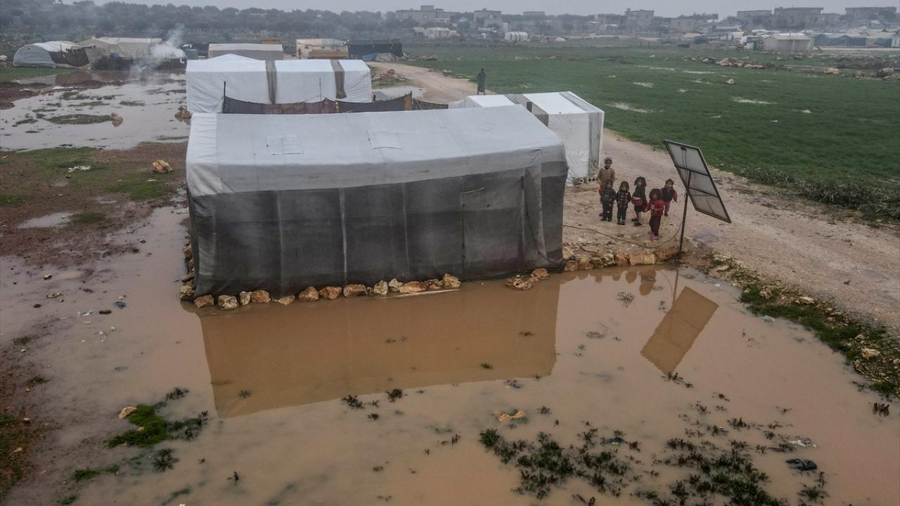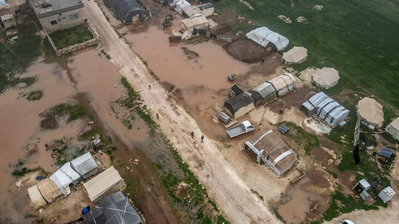 Suriye'nin kuzeybatısındaki İdlib ilinde son günlerde yoğun sağanak nedeniyle ıslanan, su alan ve barınılmaz hale gelen kamp çadırlarında yaşayanların hayatı daha da zorlaştı.