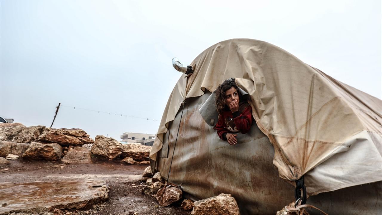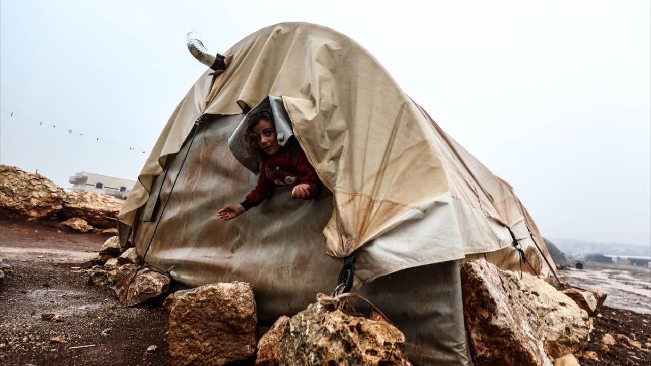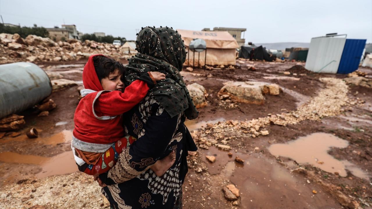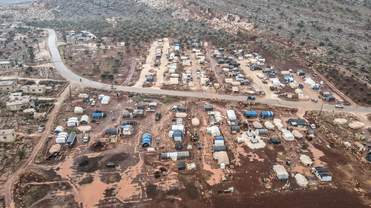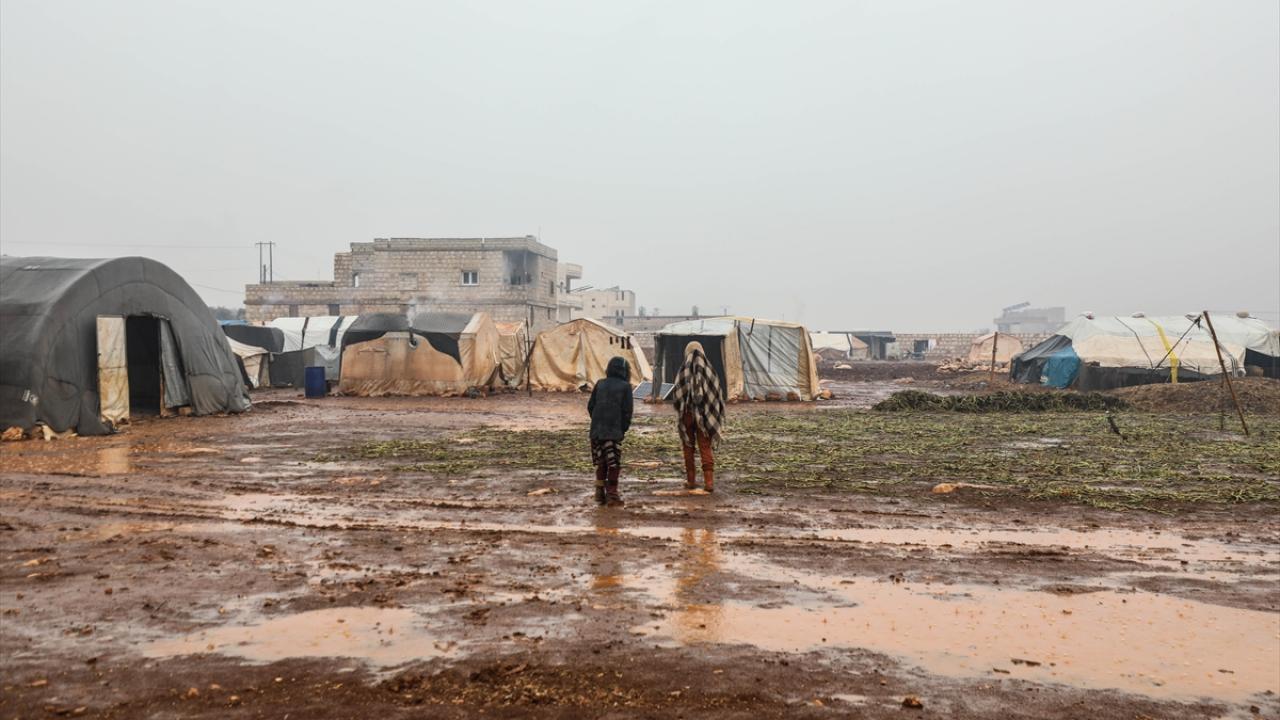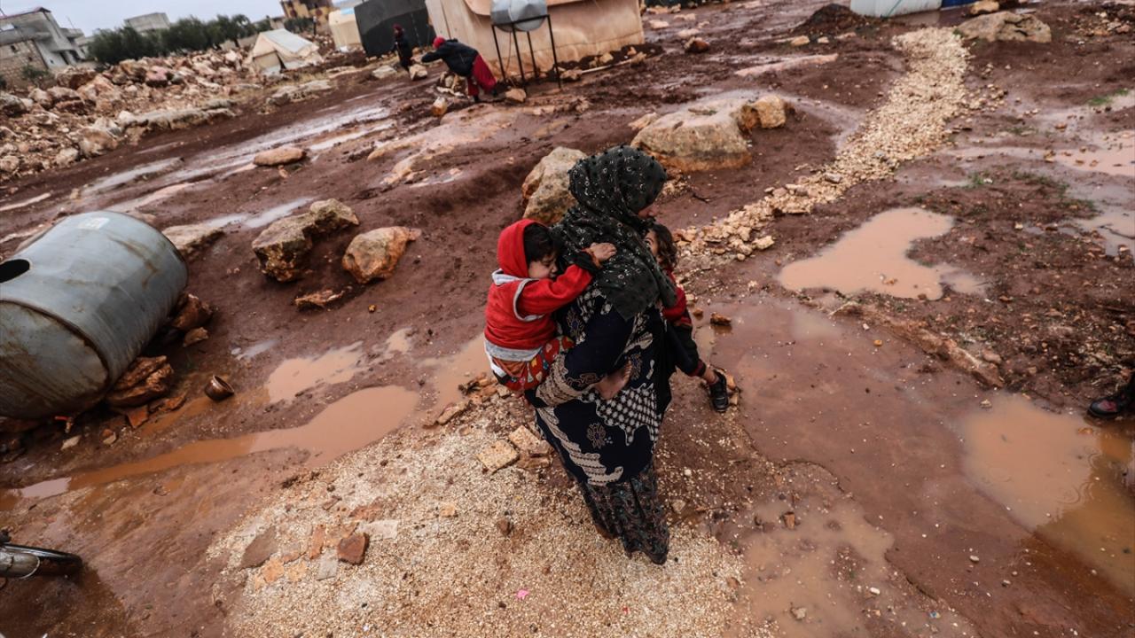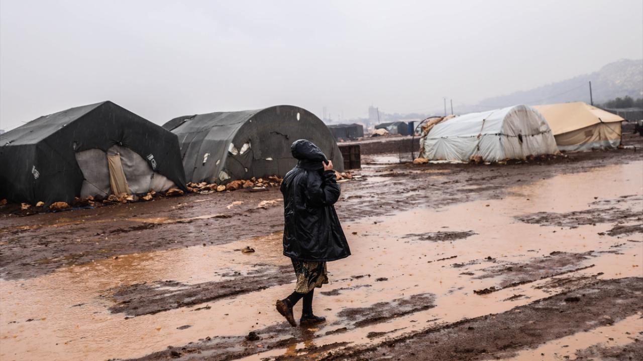 Suriye'nin kuzeybatısındaki İdlib'de etkisini gösteren şiddetli yağış, Türkiye sınırına yakın bölgelerindeki çadır kamplarında yaşayan binlerce sivilinin hayatını olumsuz etkiledi.