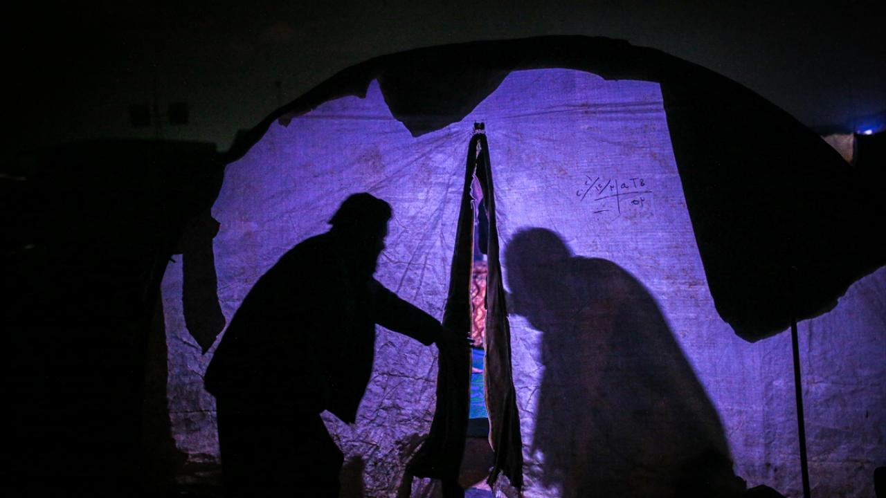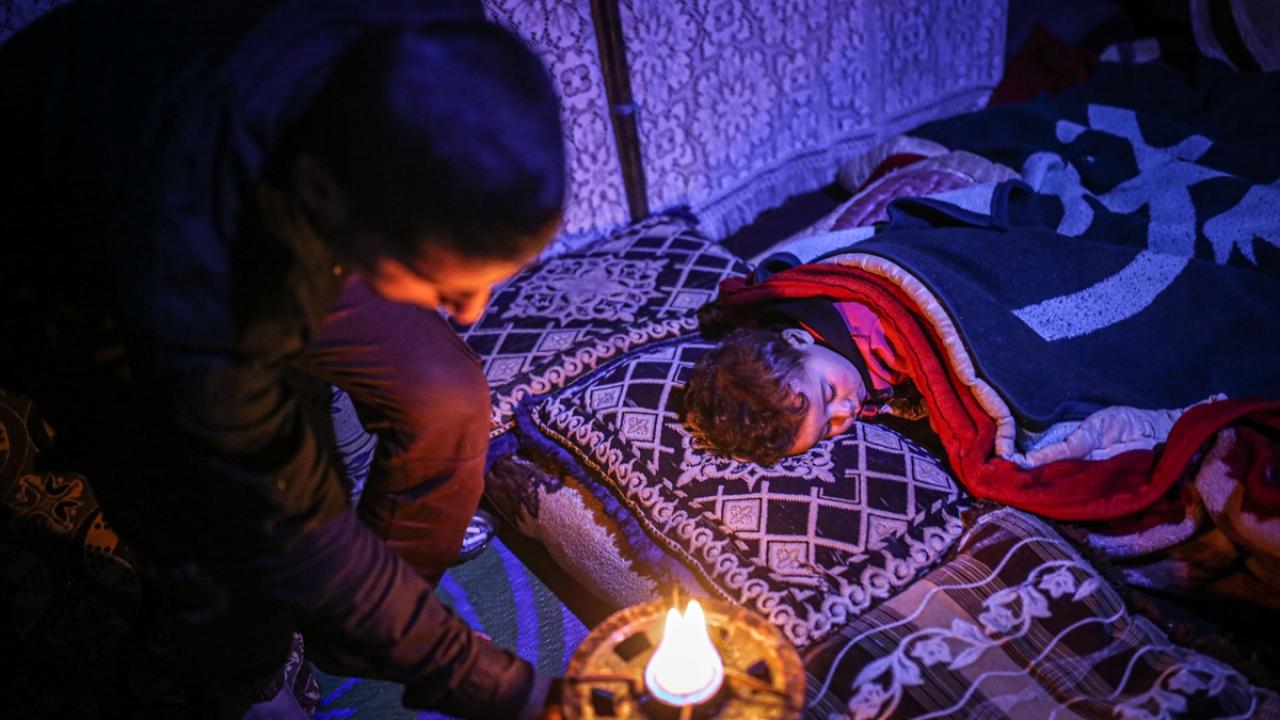 İdlib`in Atme kamplar bölgesinde dondurucu havaların etkili olduğu Şahşabo Kampı`nda yerinden edilmiş ailelerin barındığı çadırlarda gece zorlu yaşam şartlarını görüntülendi.