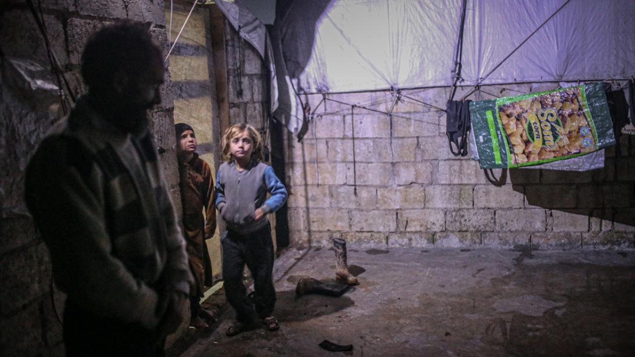 Suriye'nin kuzeybatısındaki İdlib ilindeki babalar, kış aylarının sert geçmesi nedeniyle çocuklarının donmaması için dondurucu soğukta gece nöbeti tutuyor.