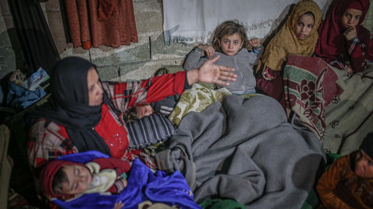 Barri, 7`si çocuk toplam 12 kişilik ailesiyle bir çadırda yaşadıklarını belirterek, "(Gece) Şu an çadırda sobamız veya yakacak hiçbir şeyimiz yok. Çocukları ısıtmak için çöpten topladığımız eski ayakkabı ve plastikleri gündüz yakıyoruz, geceleri battaniyeden başka bir seçeneğimiz yok." dedi.
