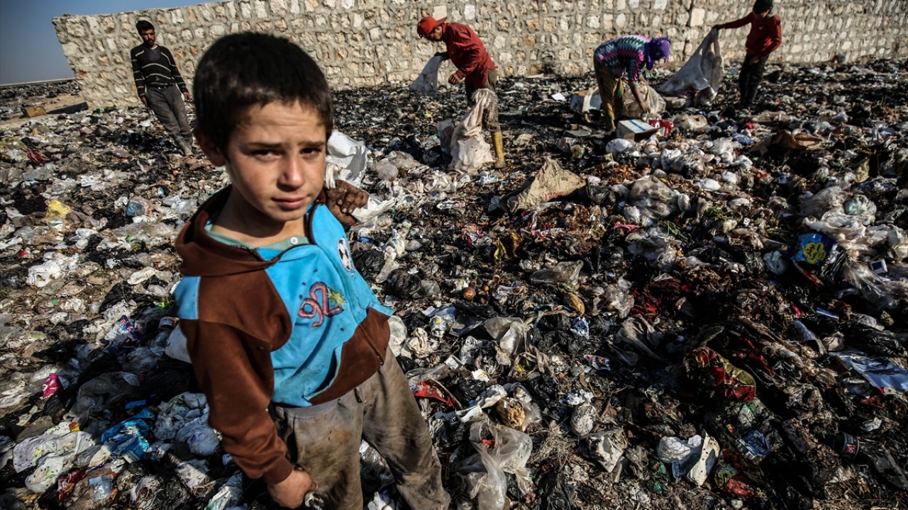 Esed rejimi ve Rusya`nın desteğiyle ele geçirdiği İdlib`in Sincar ilçesinin mağdur çocukları çöplükte çalışarak, ailelerine maddi katkıda bulunmaya çalışıyor.