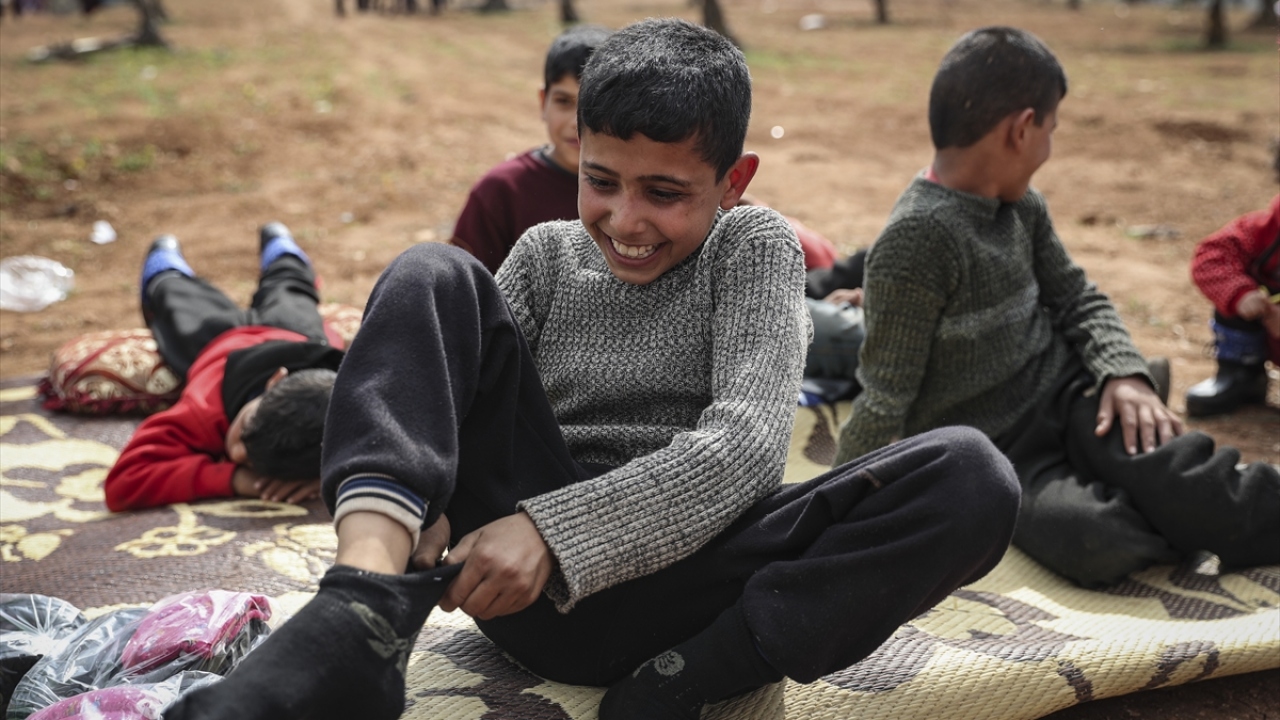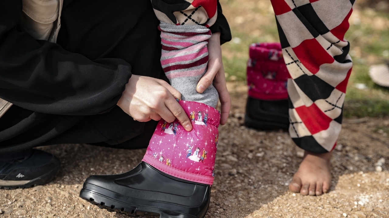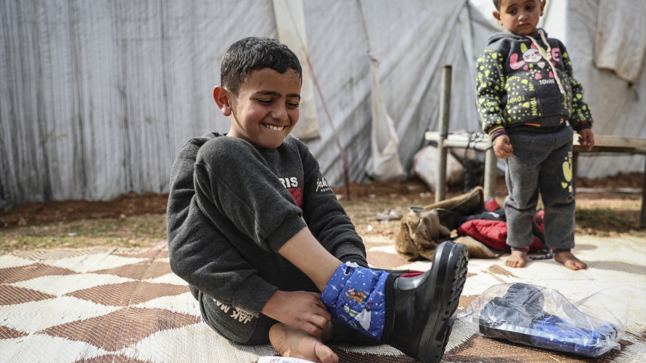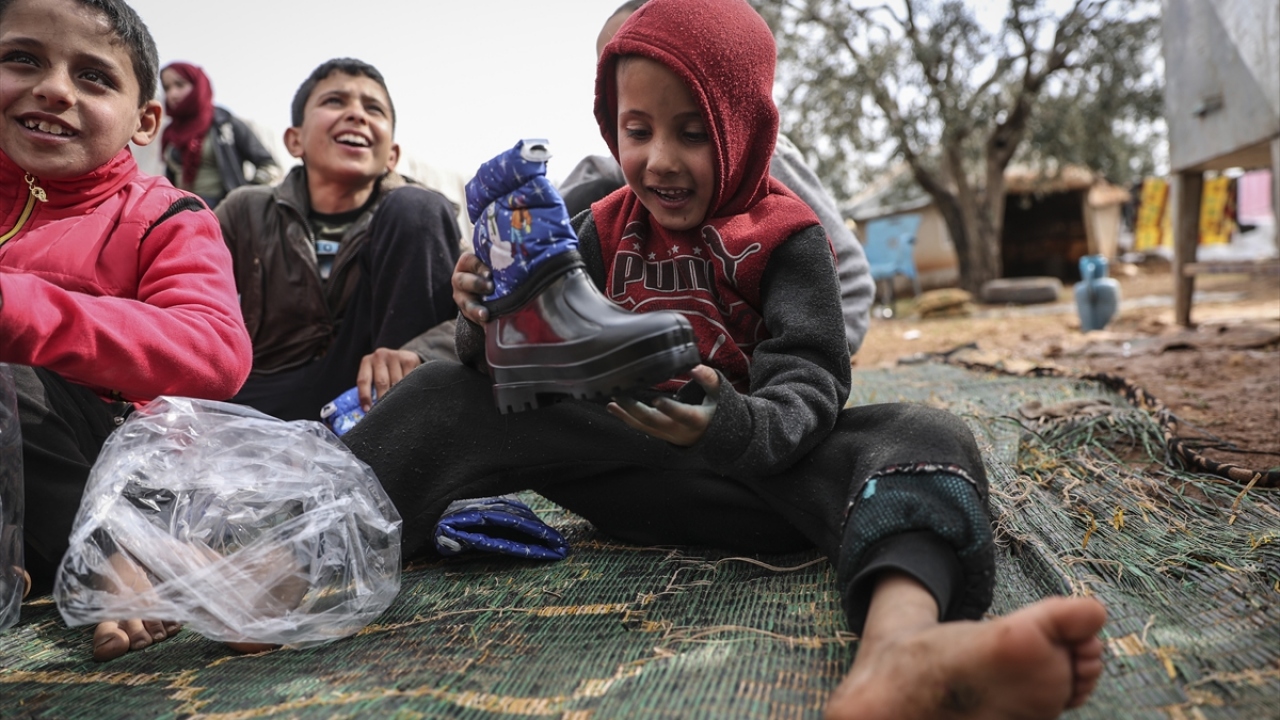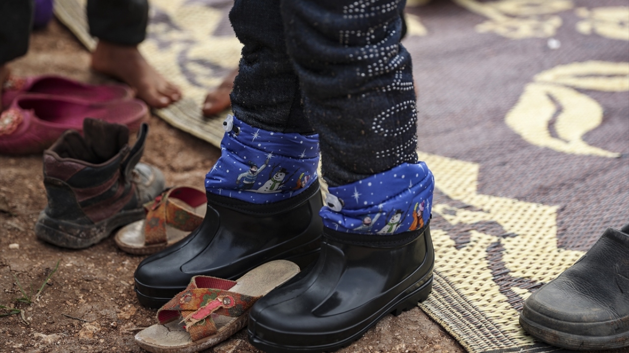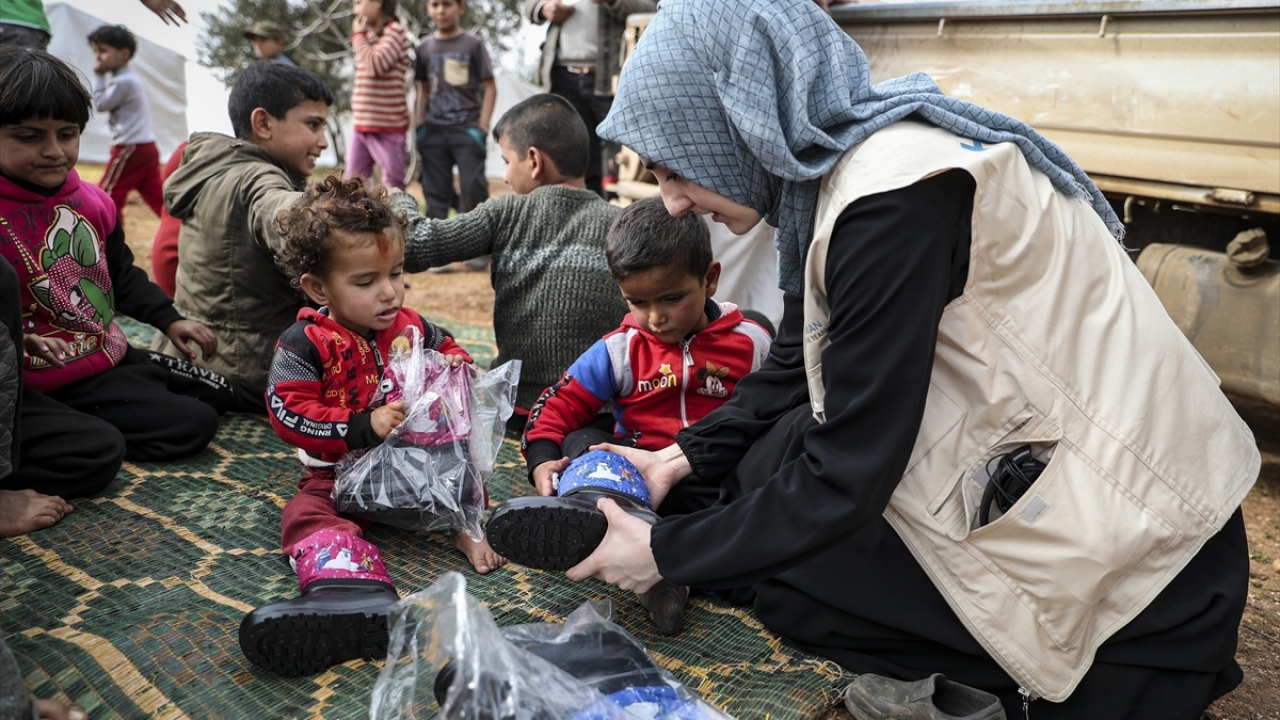 Kampanya kapsamında toplanan yardımla alınan 3 bin 600 çizme ve çorap, İdlib`e bağlı Akrabat bölgesindeki çadır kamplarda dağıtıldı.