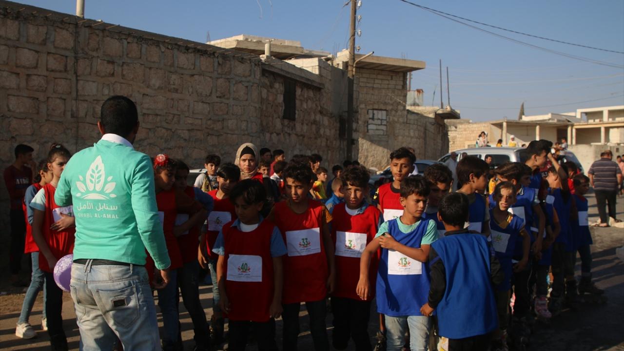 Ahmet, yarışmaya farklı yerleşimlerden 45 kız ve erkek çocuğun katıldığını belirterek "Esed rejiminin saldırları sonucu zorla yerinden edilen çocukları bir nebze olsa da eğlendirmeyi ve mutlu etmeyi hedefliyoruz." dedi