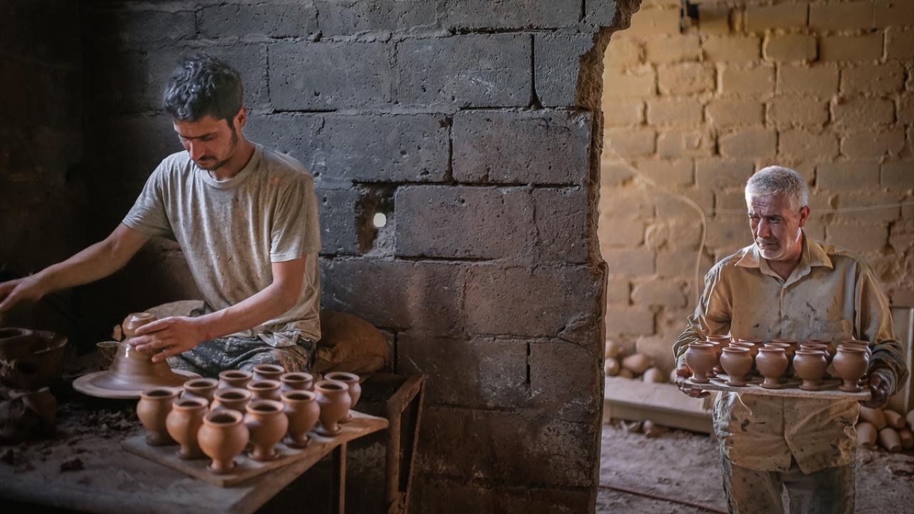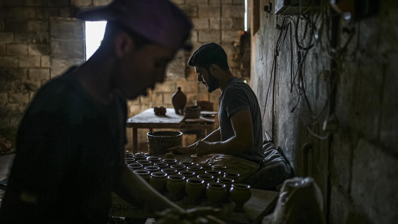 Suriye'nin kuzeybatısındaki idlib ilinin Ermenaz köyünde, yüzlerce yıldır otantik yöntemlerle yapılan çömlekçilik geleneği az sayıda usta tarafından yaşatılmaya çalışılıyor.