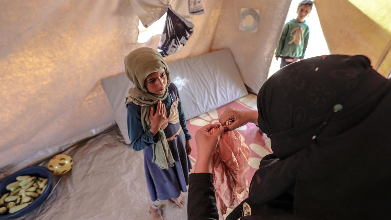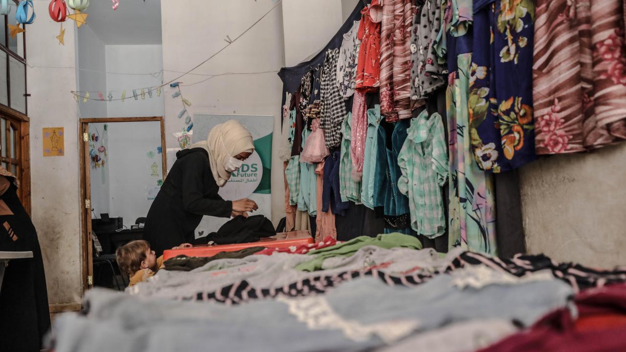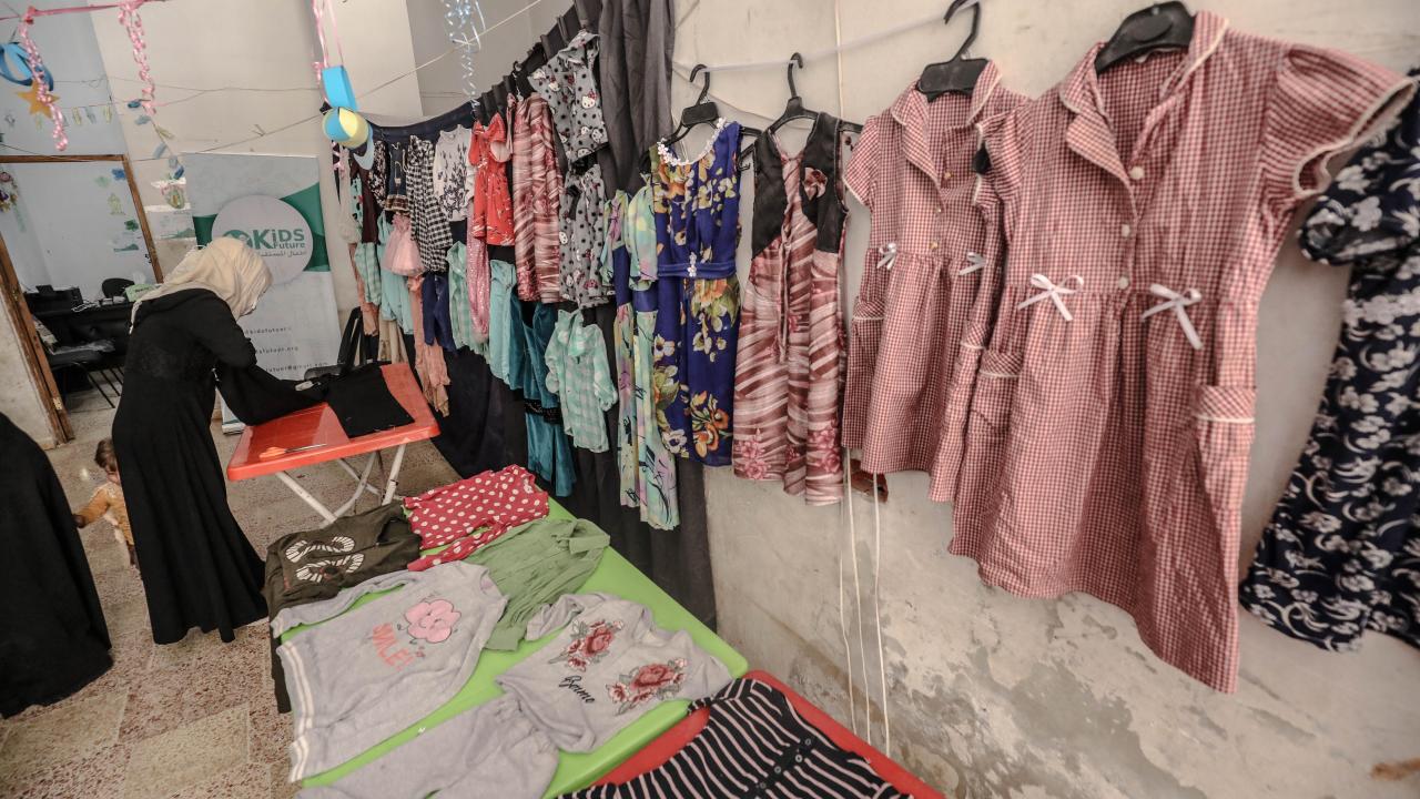Suriye'nin İdlib ilindeki 6 gönüllü kadın terzi, ikinci el kıyafetleri onararak Beşşar Esed rejiminin saldırılarından kaçıp derme çatma çadırlara yerleşen çocuklara bayramlık olarak ulaştırıyor.