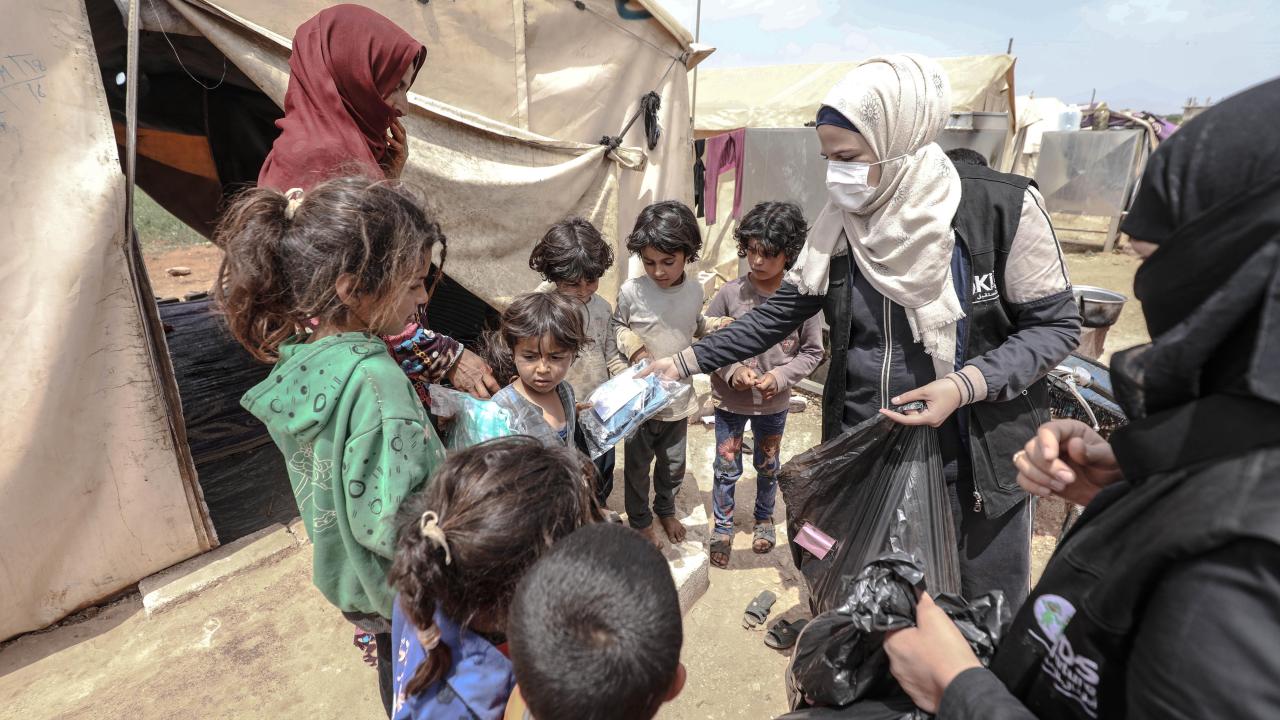 Rejim saldırıları sonucu yerinden edilerek çadıra sığınmak zorunda kalan 11 yaşındaki Dua Halaf da “Birkaç kadın çadırlara geldi. Burada yaşayan çocuklara elbise dağıttı” diye konuşuyor.