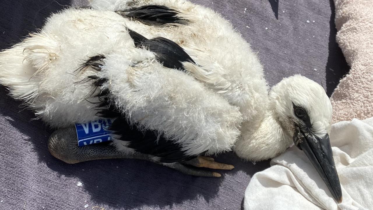 Plastik halkaların üzerinde bulunan kod numarası kaydedildikten ve biyometrik ölçümler yapıldıktan sonra, halkalanan yavru leylekler tekrar yuvalarına lift aracı ile bırakılarak işlem tamamlanıyor.