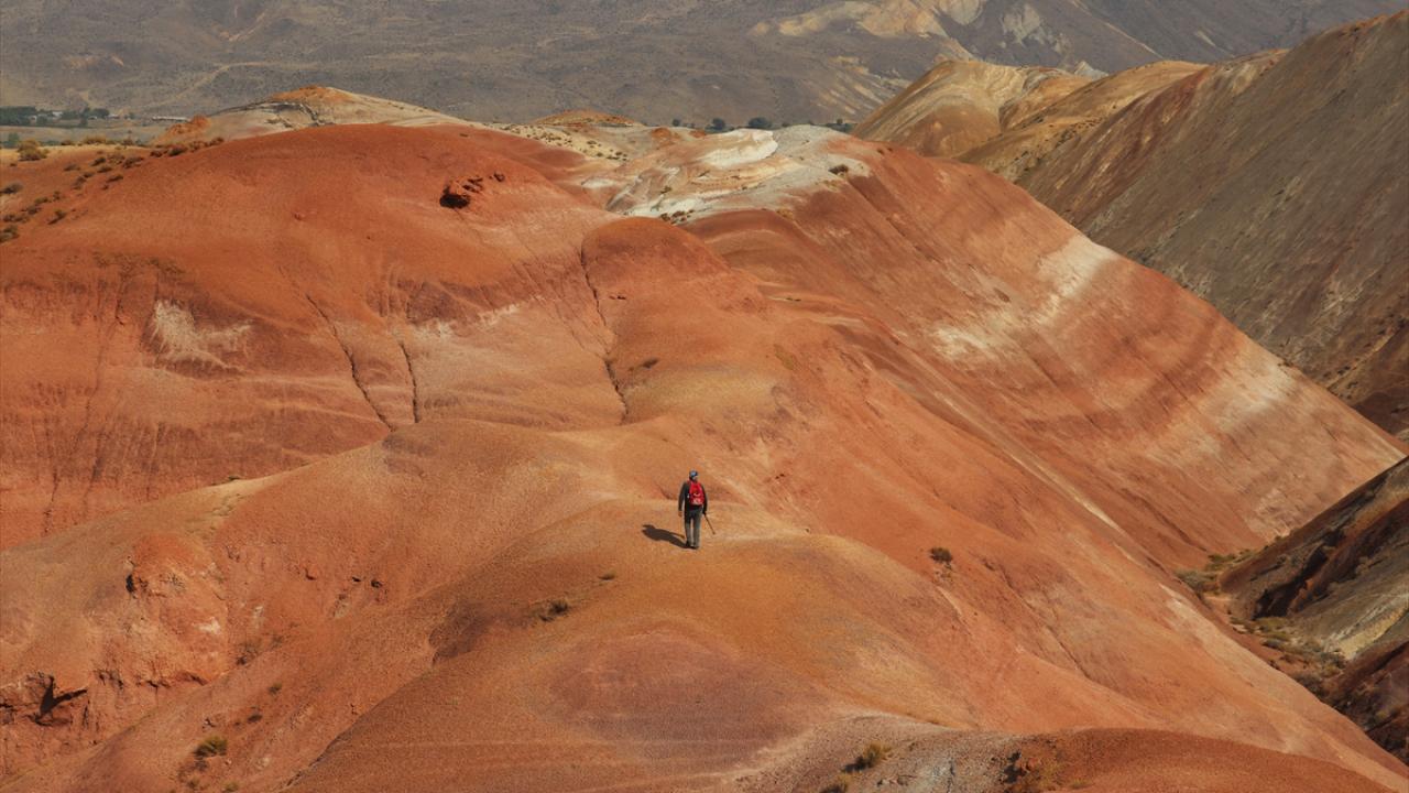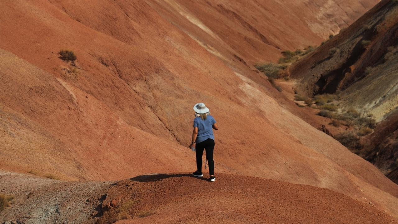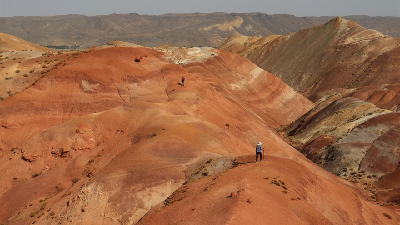 Gökkuşağı Tepeleri`ni gezmeye gelen doğa sporcularından Ali Öztürk, tepelerin ününü duyduklarını ve ekip olarak gezmeye geldiklerini söyledi.