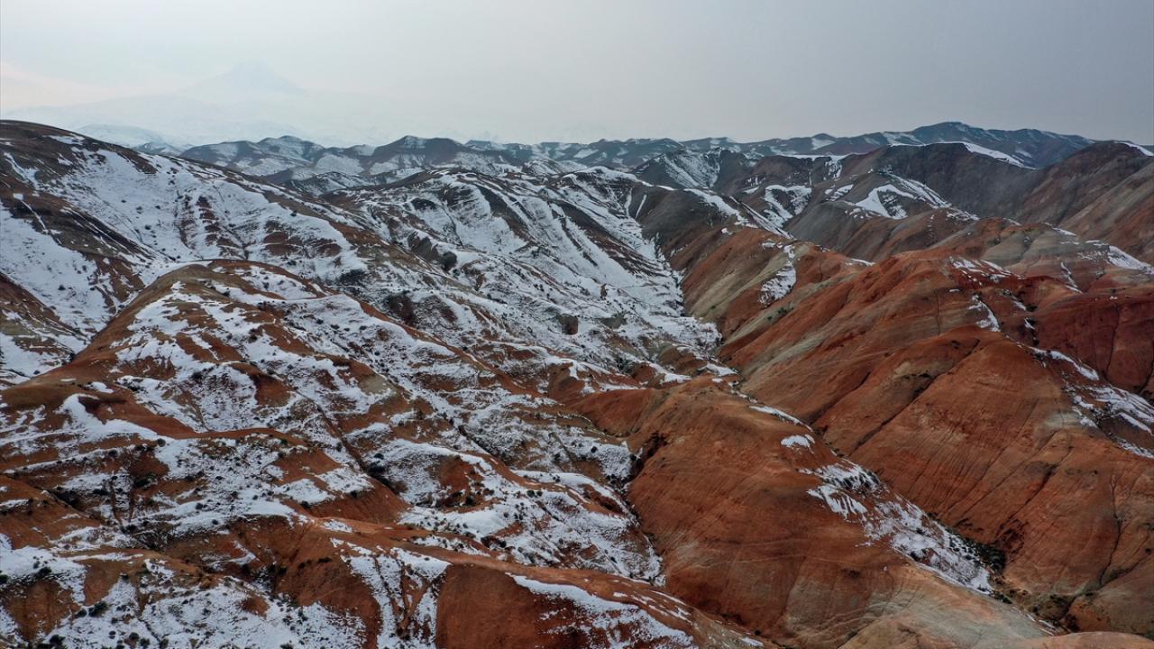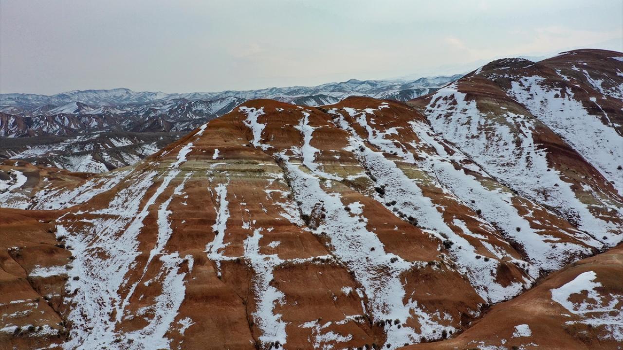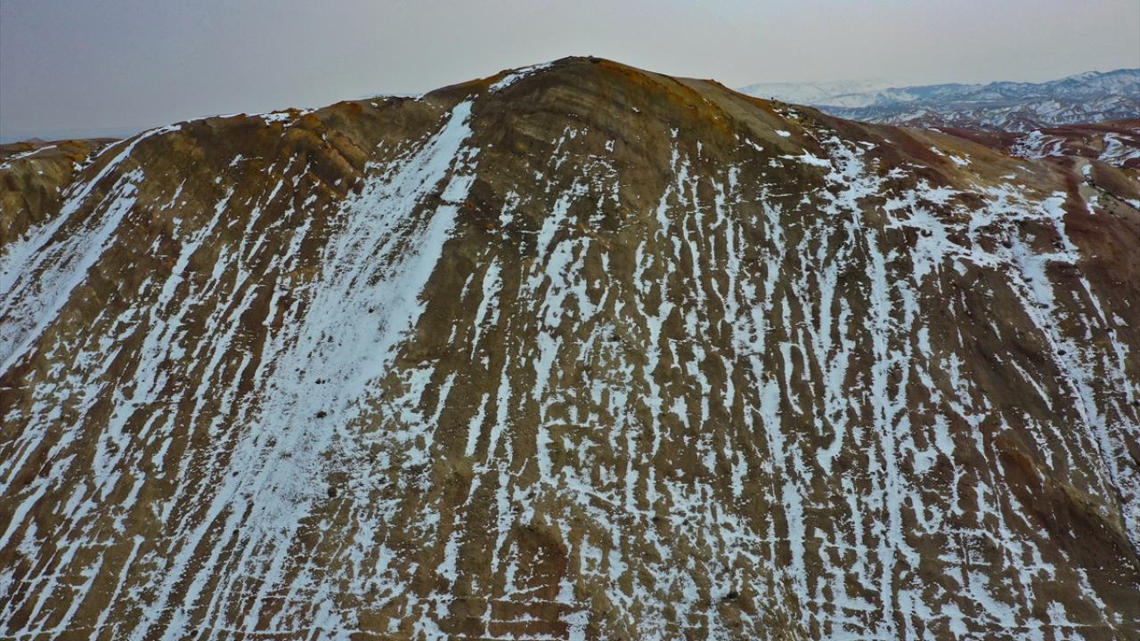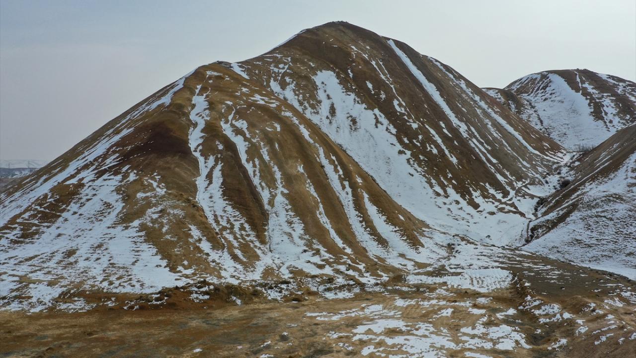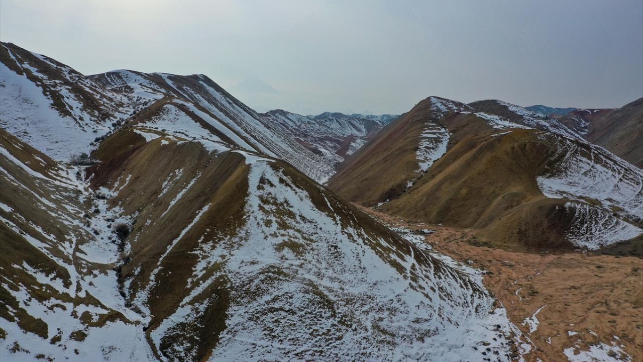 Iğdır'daki yer yer karla kaplı Gökkuşağı Tepeleri havadan görüntülendi