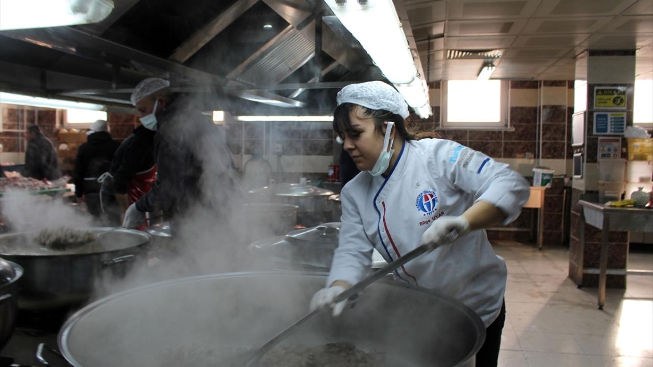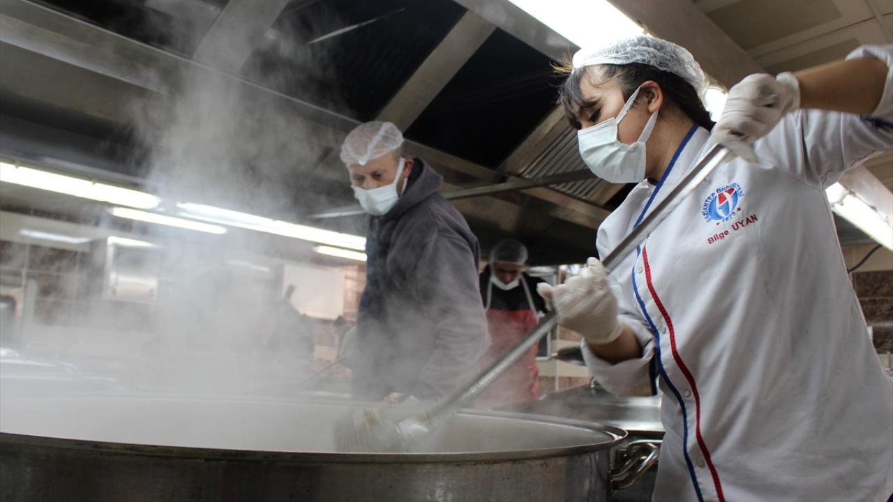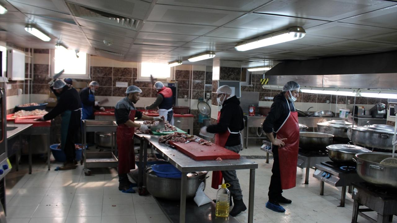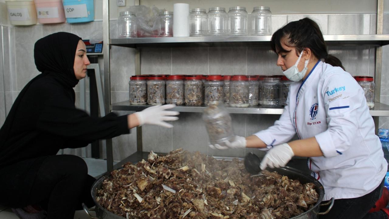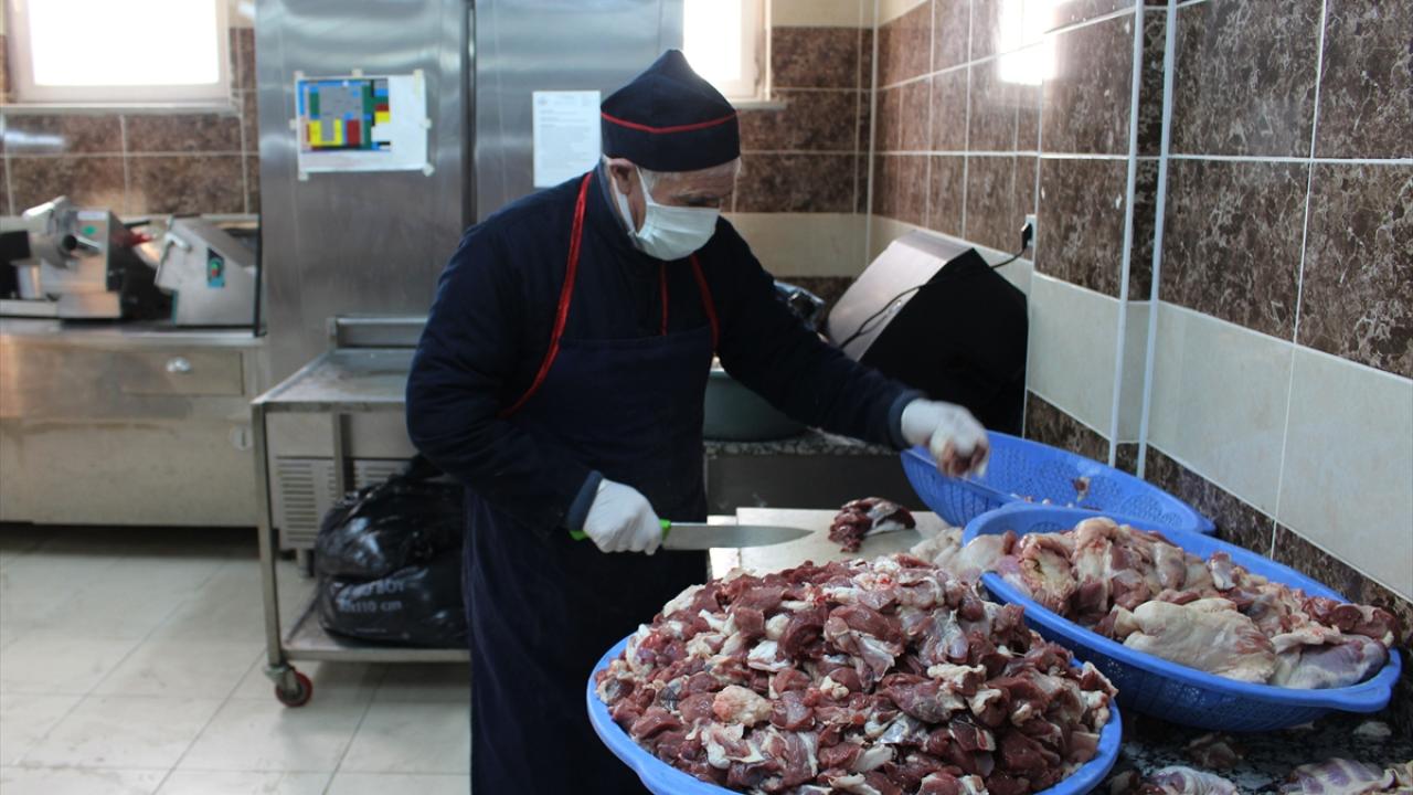 Kentteki mezbahalara götürülen küçükbaş hayvanların kesim işlemlerinin ardından hazırlanan etleri, İl Milli Eğitim Müdürlüğü bünyesindeki yemekhanelerde kavurma şeklinde pişirilip paketlendi.