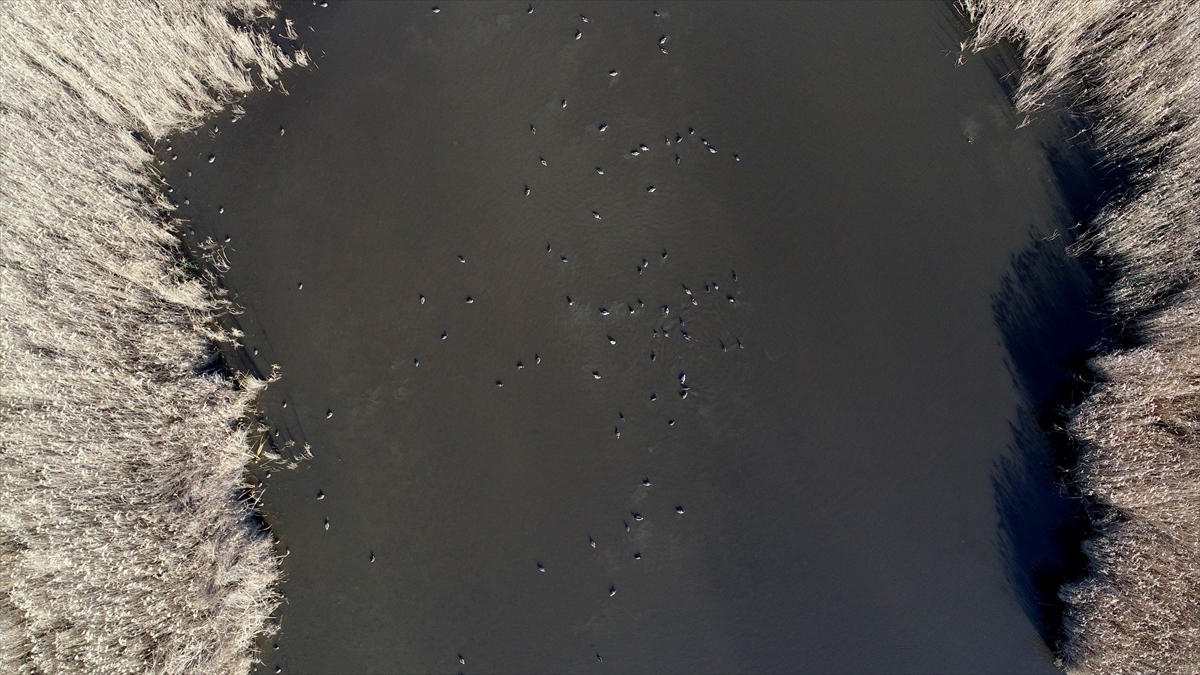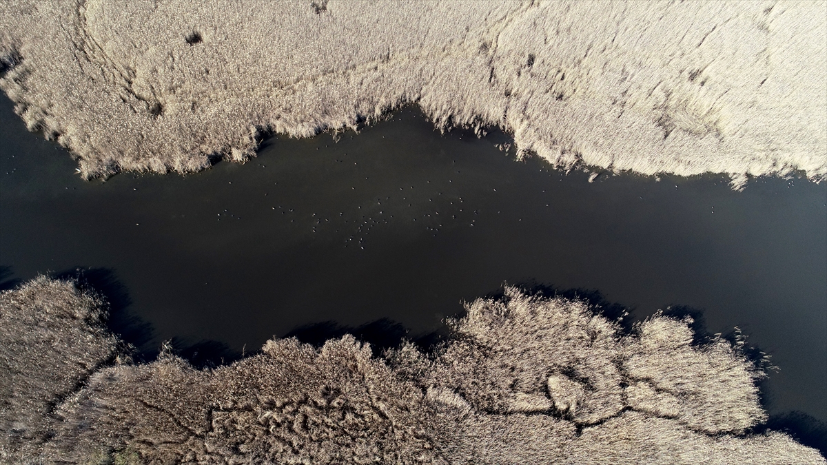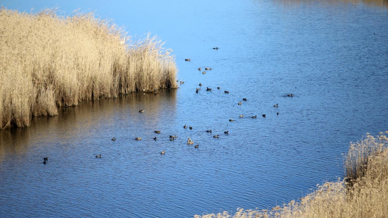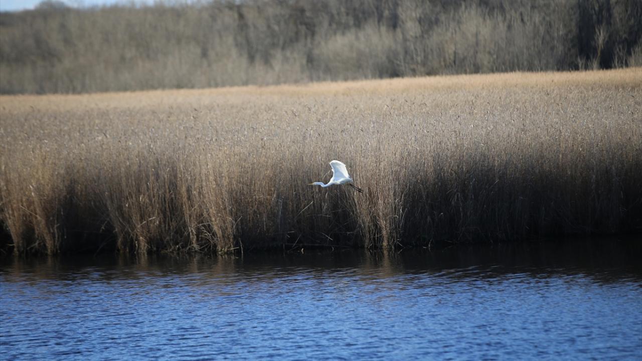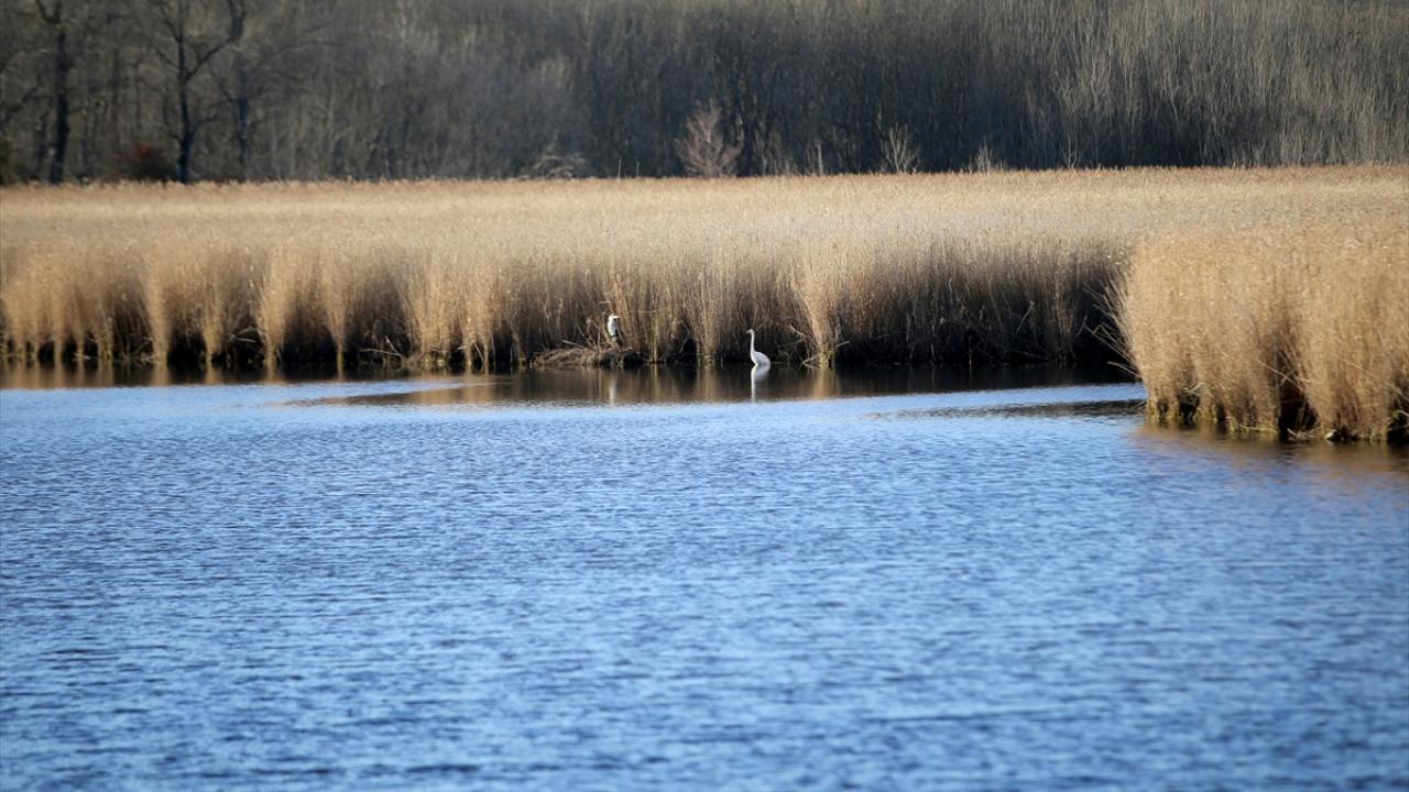 Bazı vatandaşlar ile fotoğraf tutkunları longoz içerisindeki seyir terasından deniz ve gölün birleşmesini, kuşların göle süzülmelerini seyrediyor.