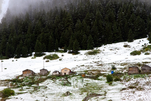 Doğu Karadeniz'de hava sıcaklıklarının mevsim normallerinin altına düşmesinin ardından yüksek rakımlı yaylalar beyaza büründü.