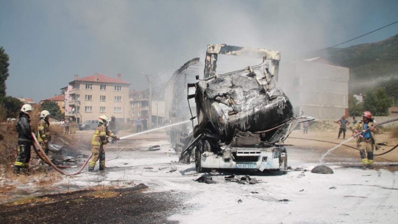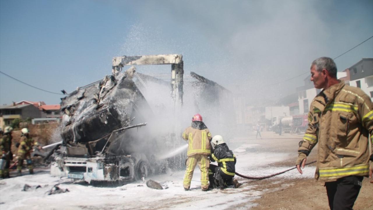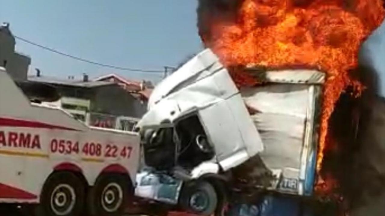 Bursa'nın Gemlik ilçesinde, iki tırın çarpıştığı kazada bir kişi yaralandı. Kazanın ardından boya yüklü tır, çekici yardımıyla Eşref Dinçer Mahallesi'nde otoparka çekildiği sırada dorse kısmından alevler yükseldi.