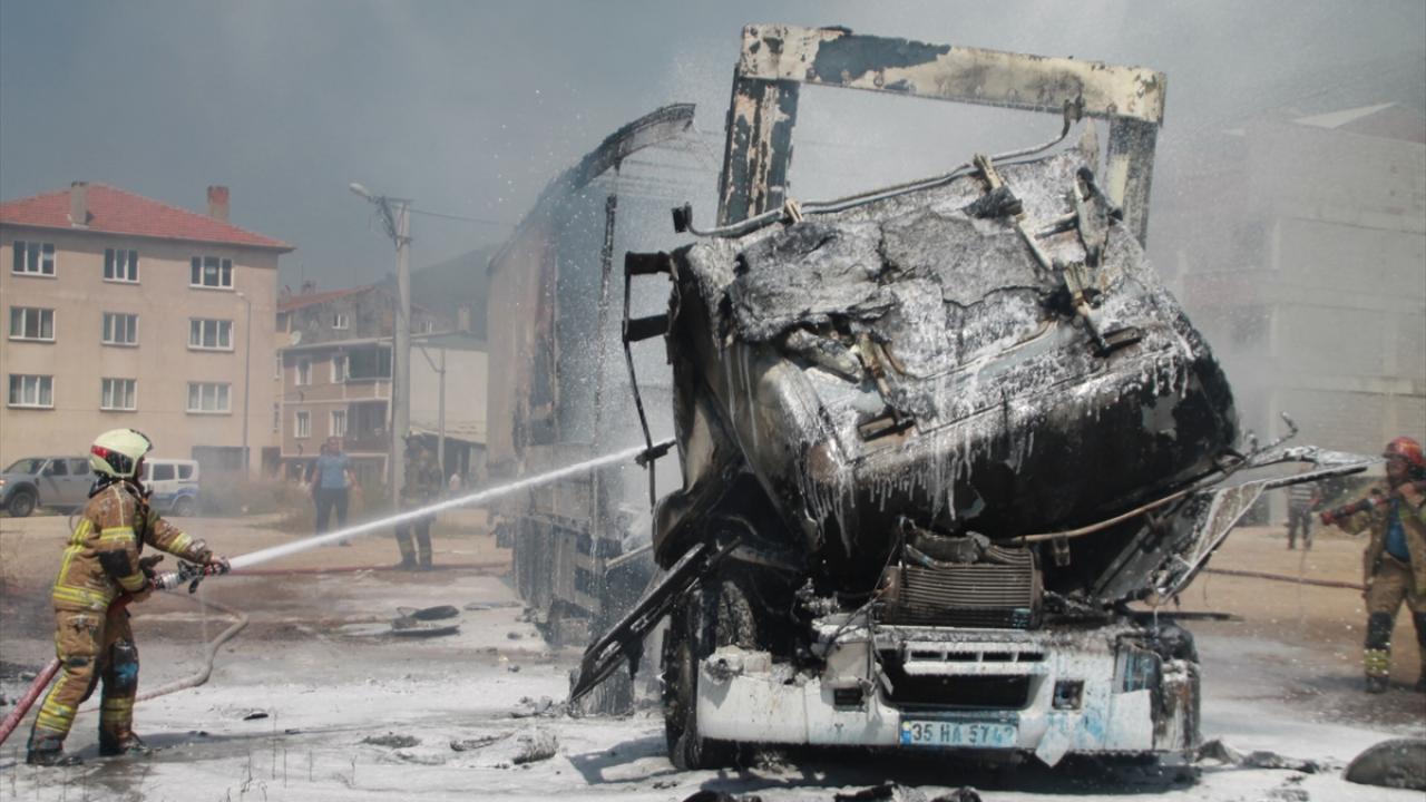 Kazanın ardından boya yüklü tır, Mustafa Çalışkan yönetimindeki çekici yardımıyla Eşref Dinçer Mahallesi`nde otoparka çekildiği sırada dorse kısmından alevler yükseldi.