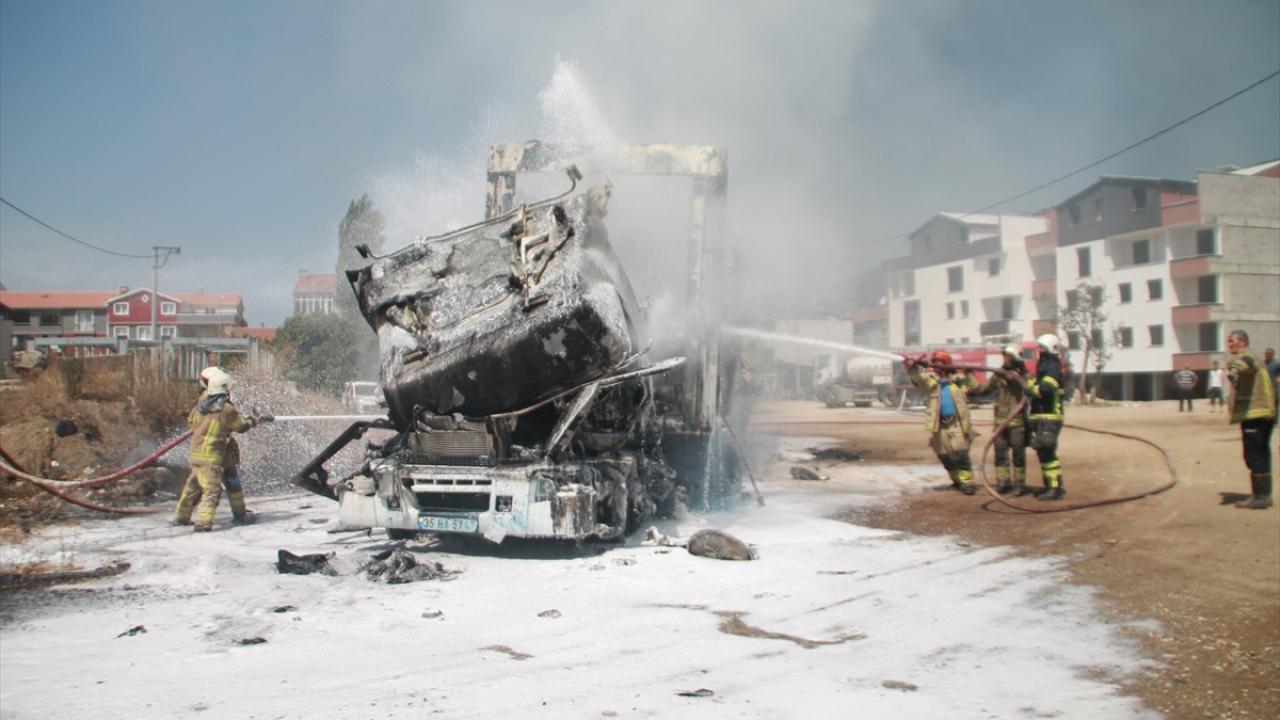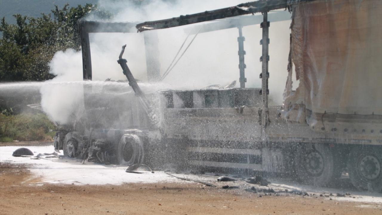 Yangın nedeniyle tır ve dorsesi tamamen kullanılamaz hale geldi.