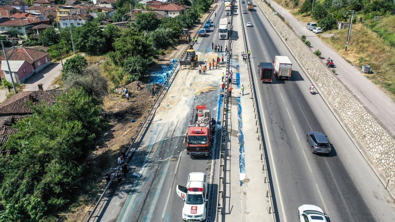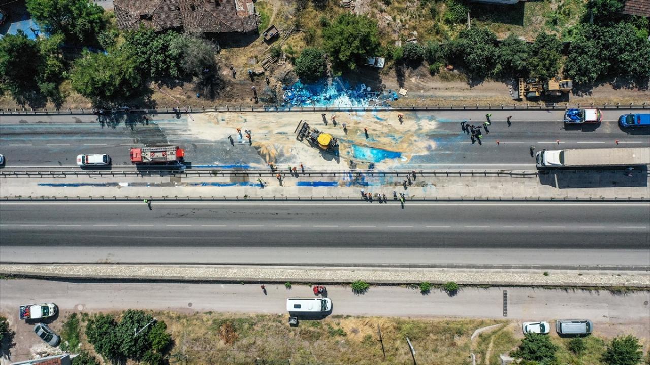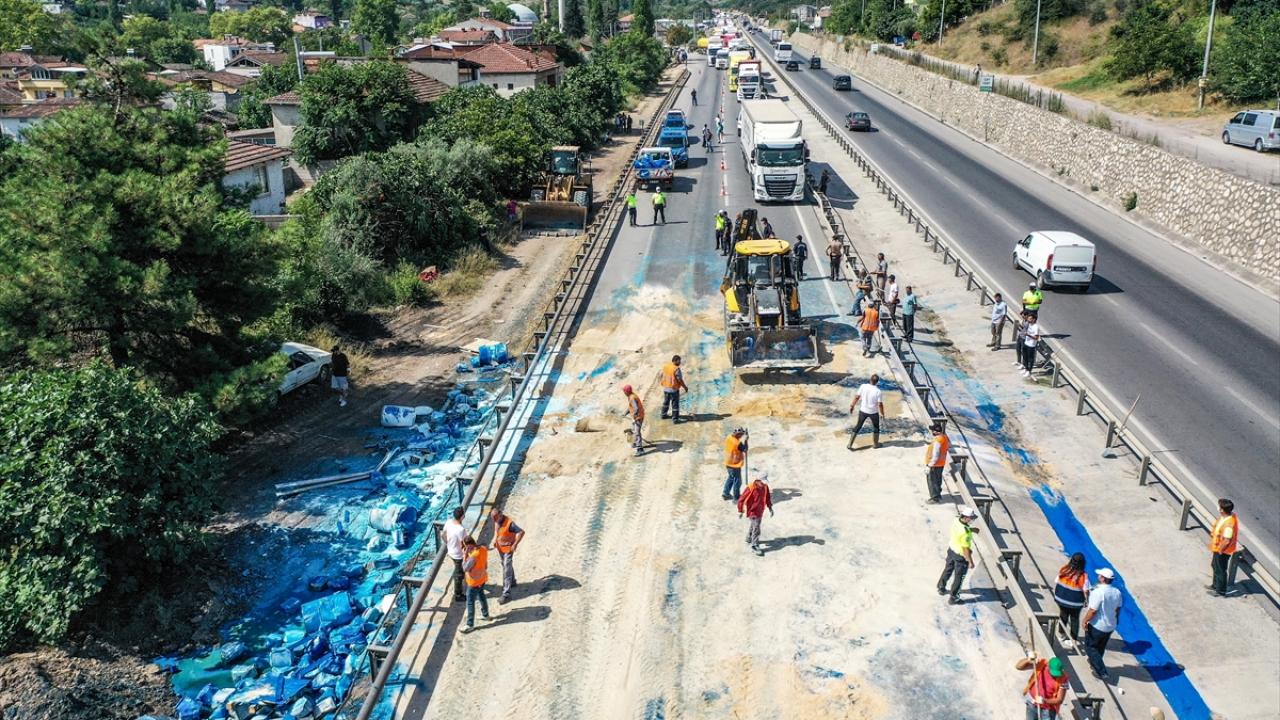 Kazanın ardından tırda yüklü olan boya varilleri kara yoluna saçıldı. Trafik, uzun süre yolun boya kaplı olmasından dolayı kapandı.