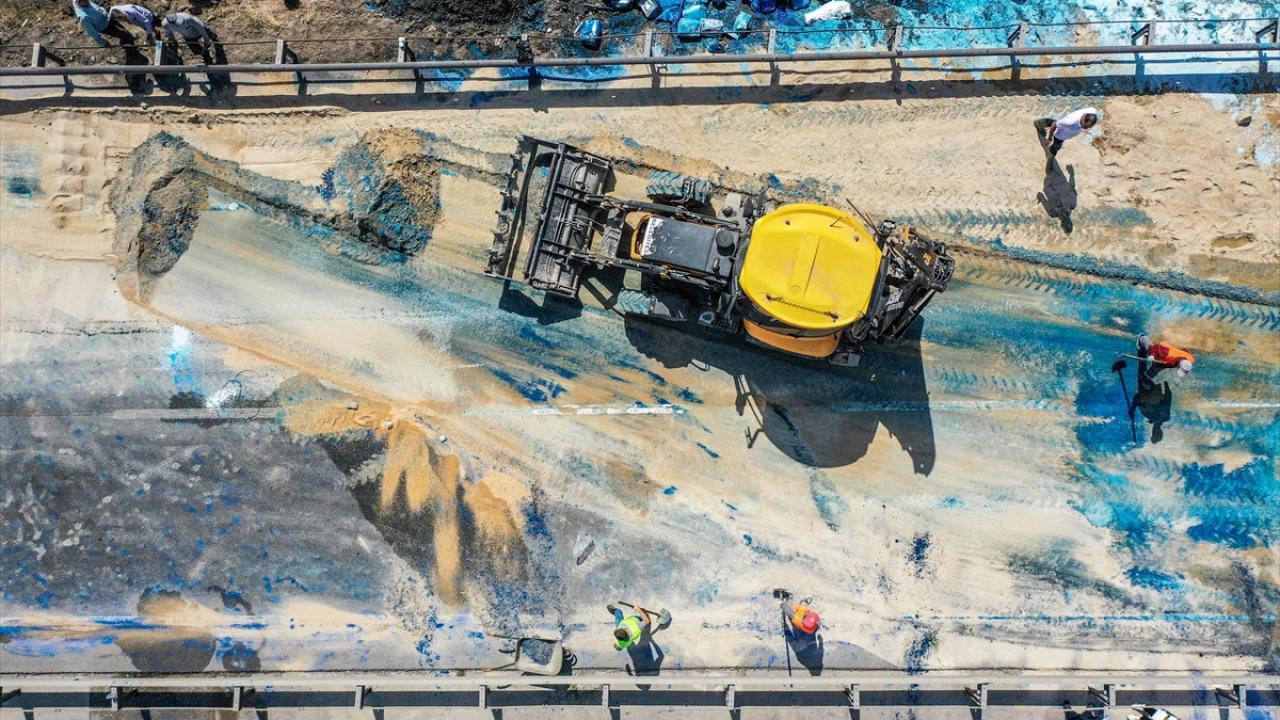 Kilometrelerce araç kuyruğunun oluştuğu yol, yapılan çalışmanın ardından dökülen boyaların üstü toprakla kapatılarak tekrar trafiğe açıldı.