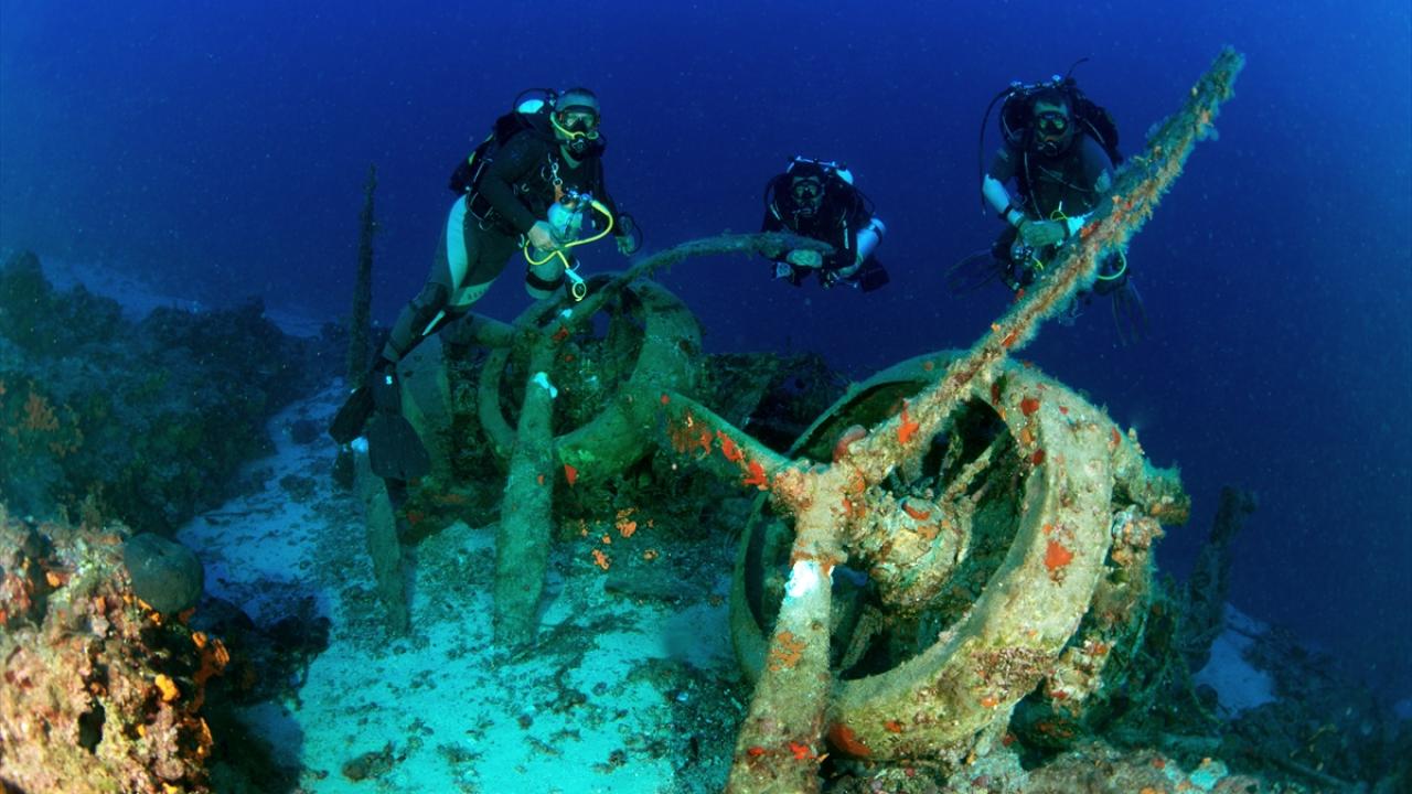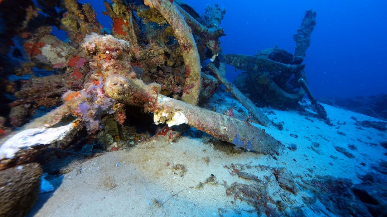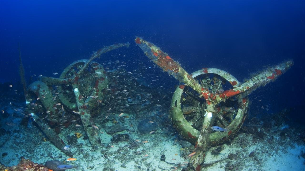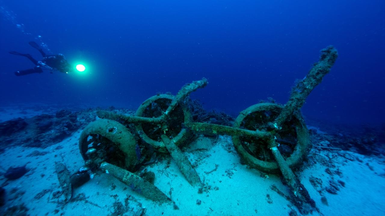 Su altı belgesel yapımcısı ve görüntü yönetmeni Tahsin Ceylan, 2. Dünya Savaşı batığı İtalyan bombardıman uçağını Antalya'nın Kaş ilçesi açıklarında görüntüledi.