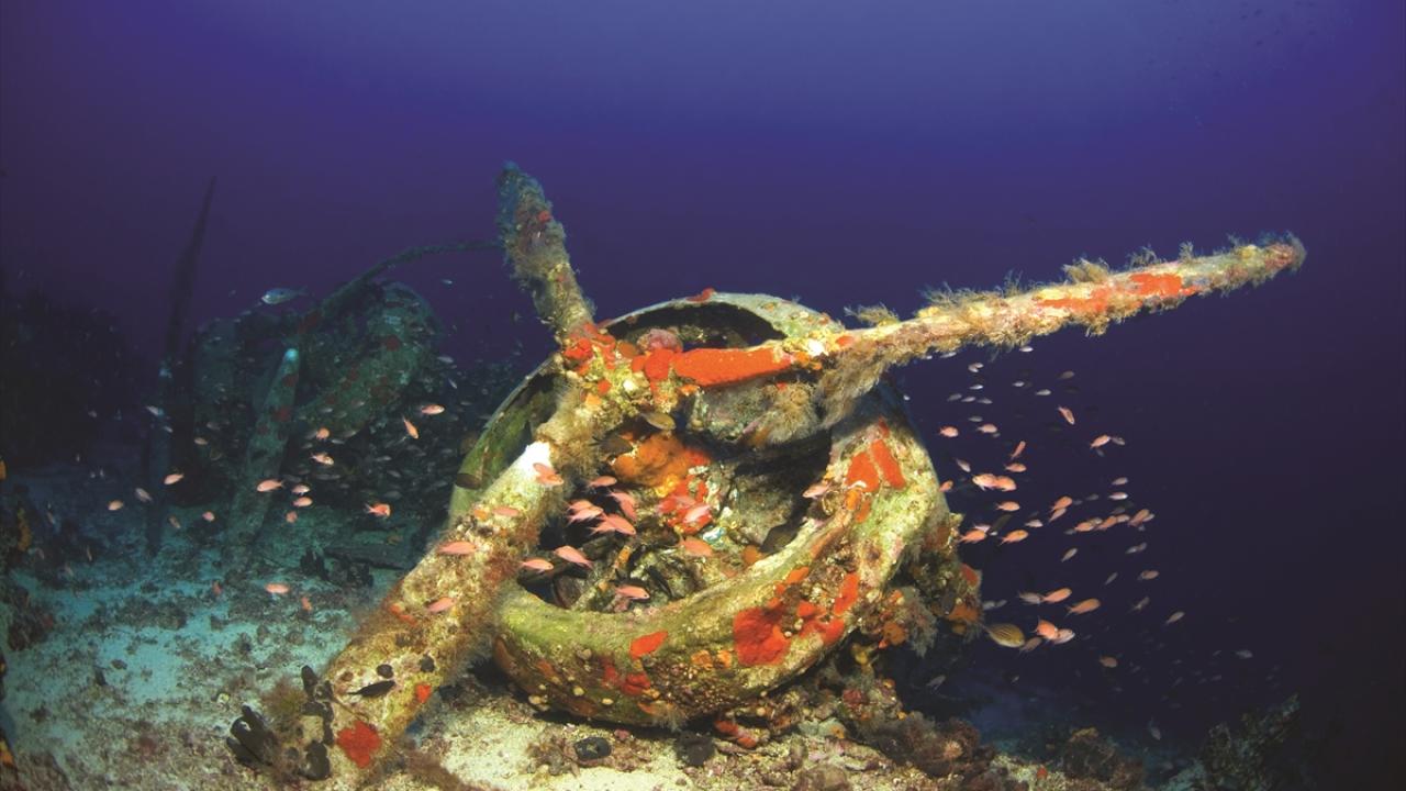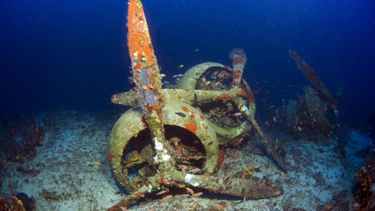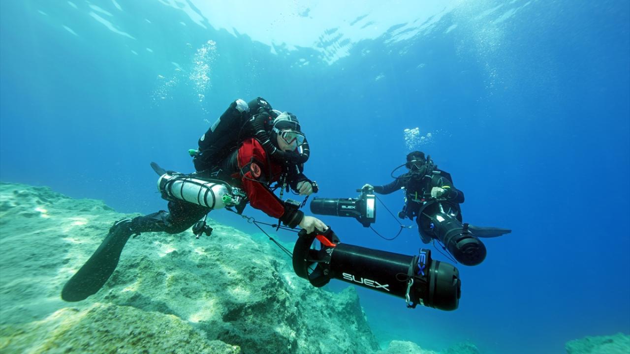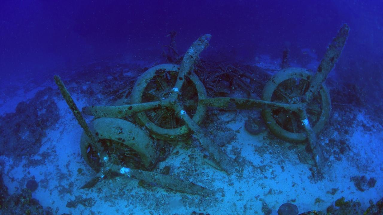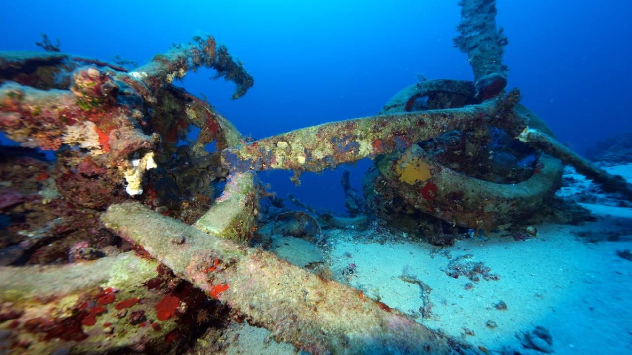 Su altı belgesel yapımcısı ve görüntü yönetmeni Tahsin Ceylan, 2. Dünya Savaşı batığı İtalyan bombardıman uçağını Antalya'nın Kaş ilçesi açıklarında görüntüledi.