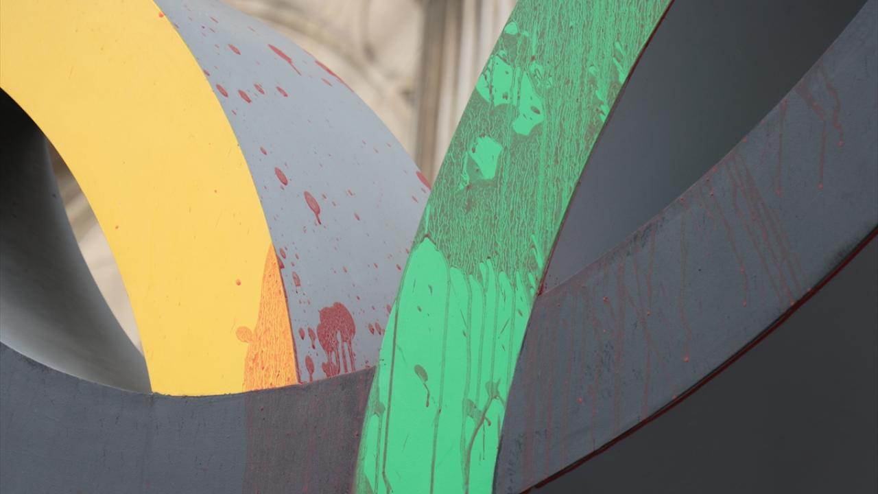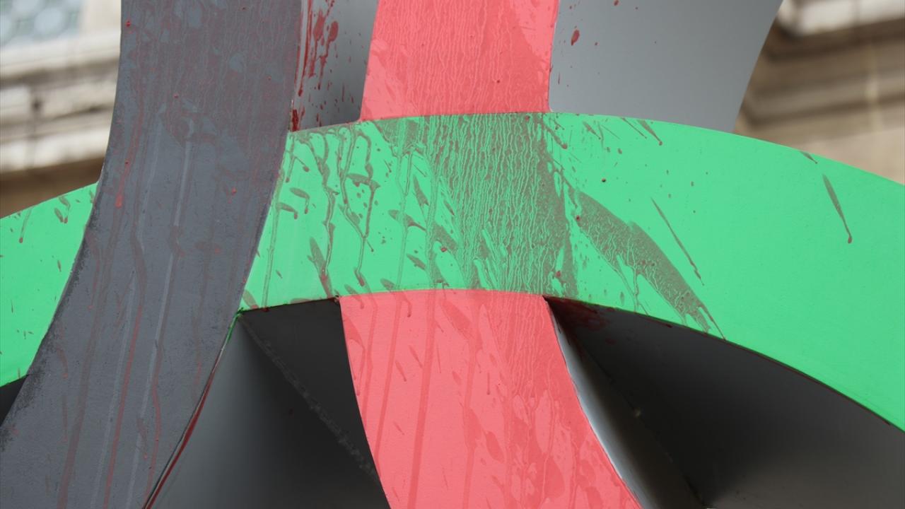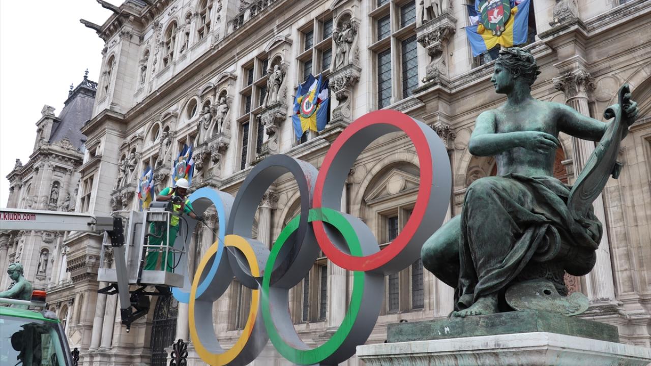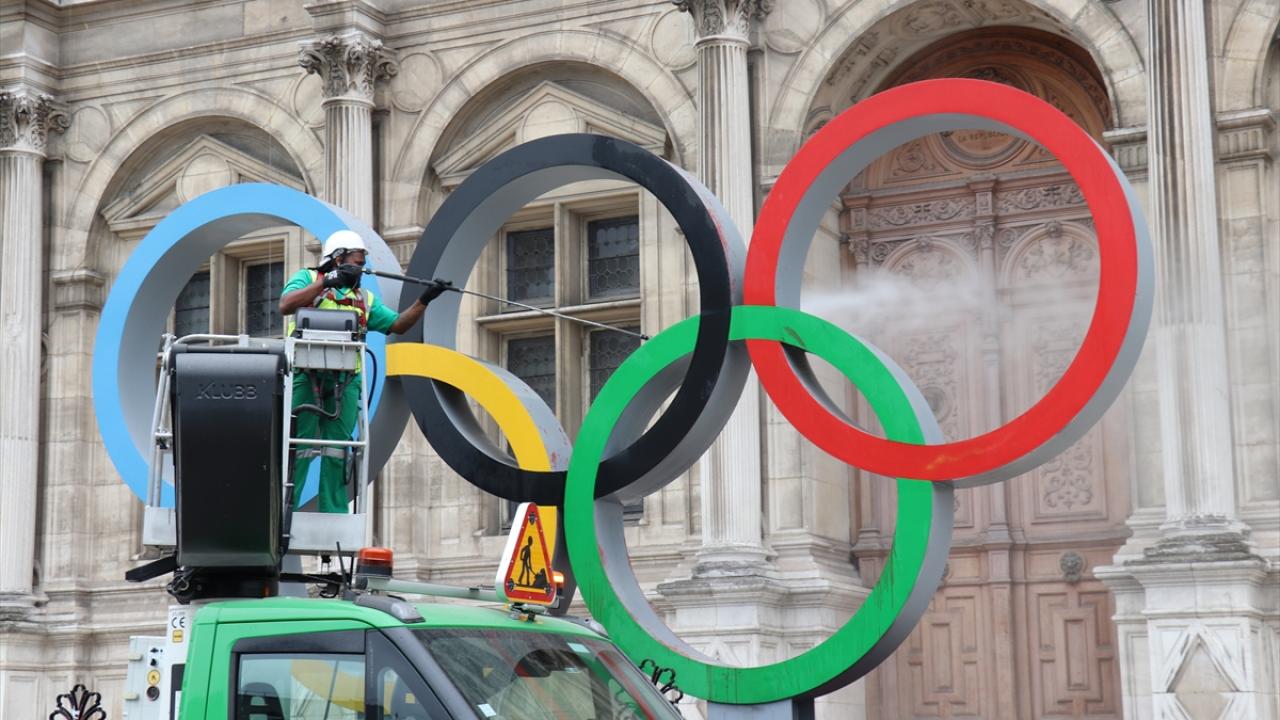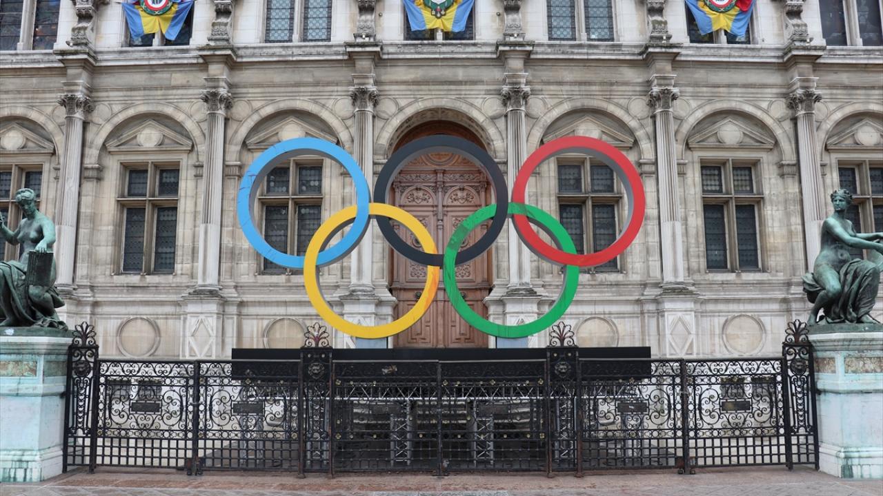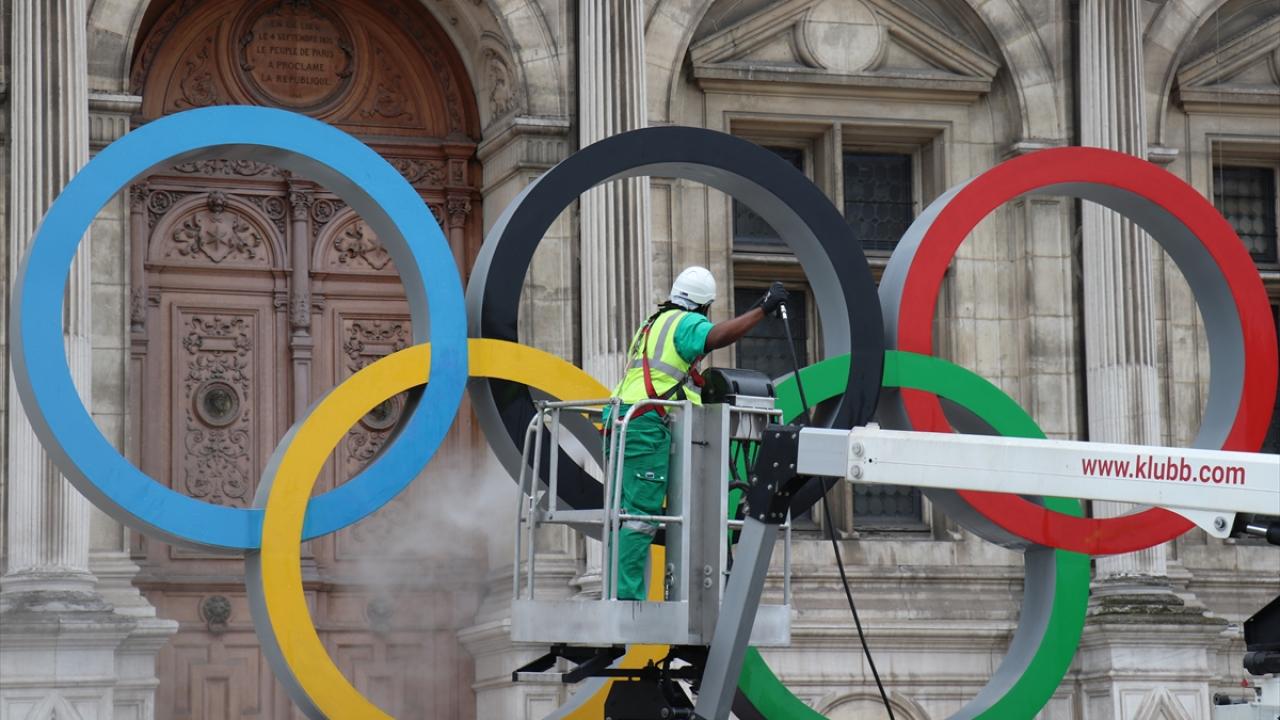 Fransa'nın başkenti Paris'te, iklim aktivistleri 2024 Olimpiyatlarının Paris'te düzenlenecek olmasını belediye binası önündeki Olimpiyat halkaları anıtına "sahte kan" dökerek protesto etti.