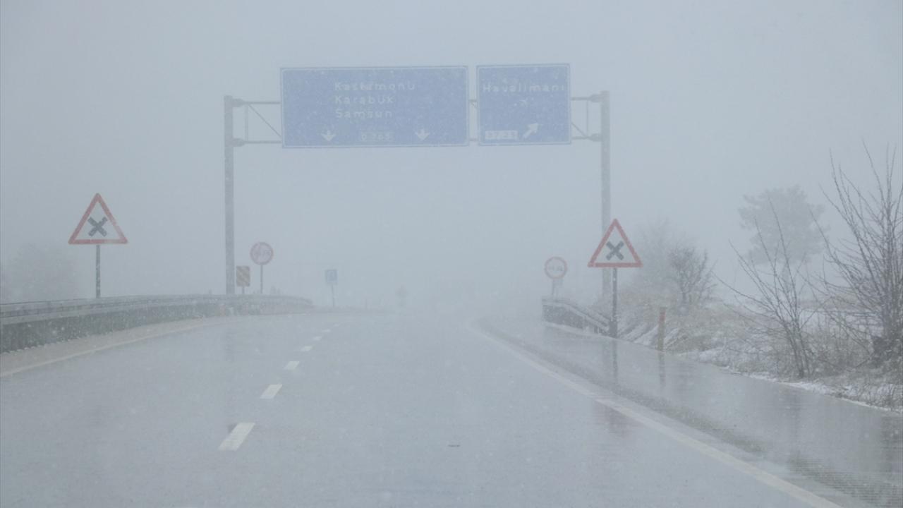 Kastamonu'nun Ilgaz Dağı kesiminde sabah saatlerinde başlayan kar yağışı etkisini sürdürüyor.