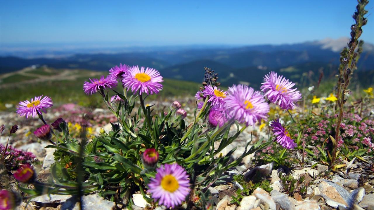 Havanın ısınmasına bağlı olarak karın yavaş yavaş zirveye doğru çekildiği Ilgaz Dağı`nın yüksek kesimleri rengarenk çiçeklerle bezendi.