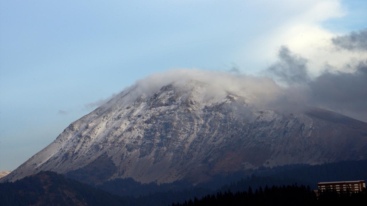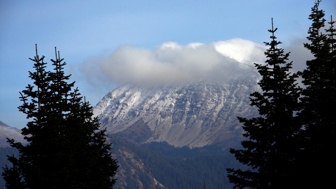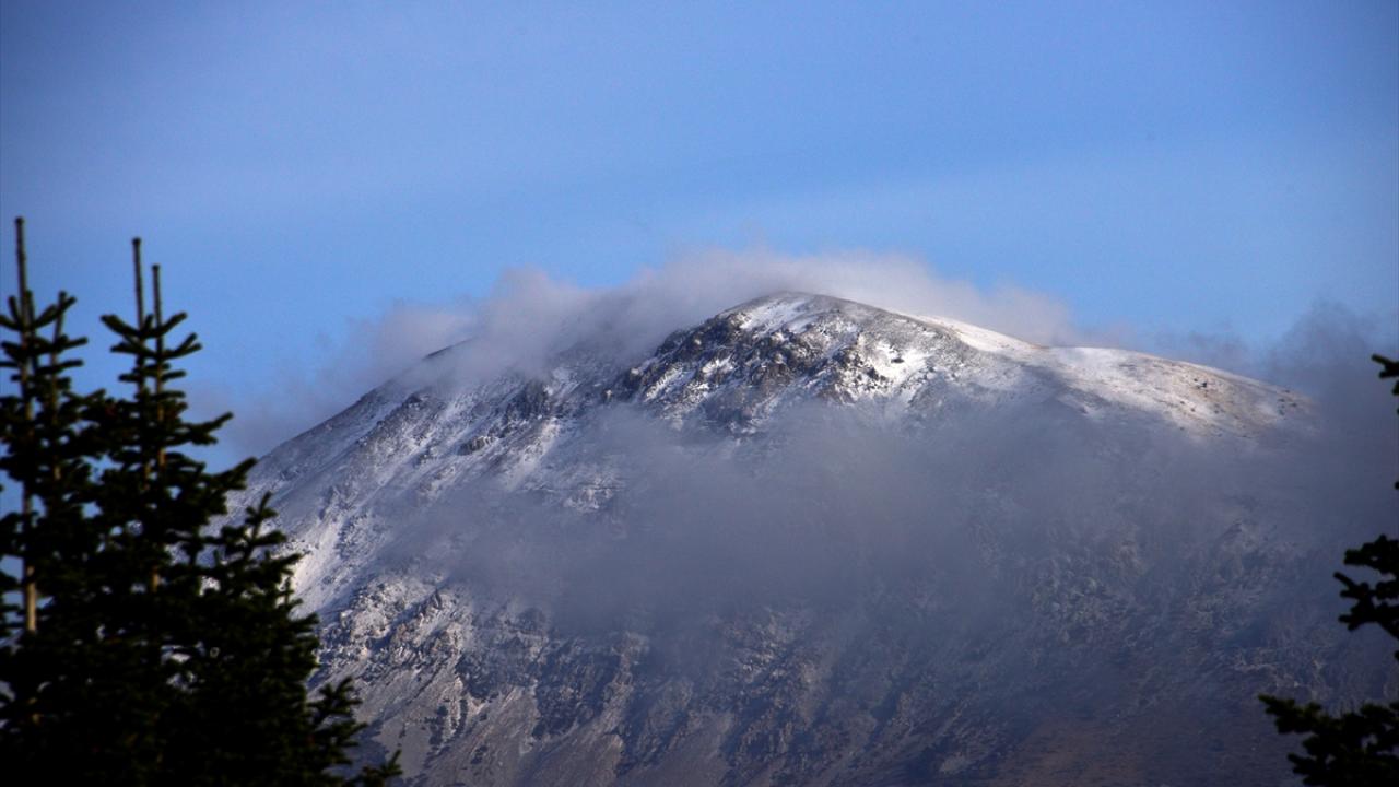 Dağın zirvesinde oluşan kar ve bulutlar, güzel görüntüler oluşturdu.