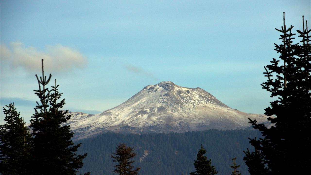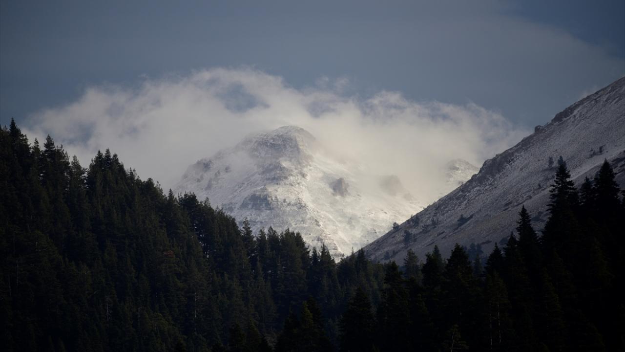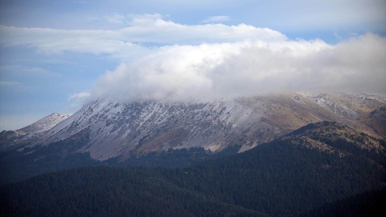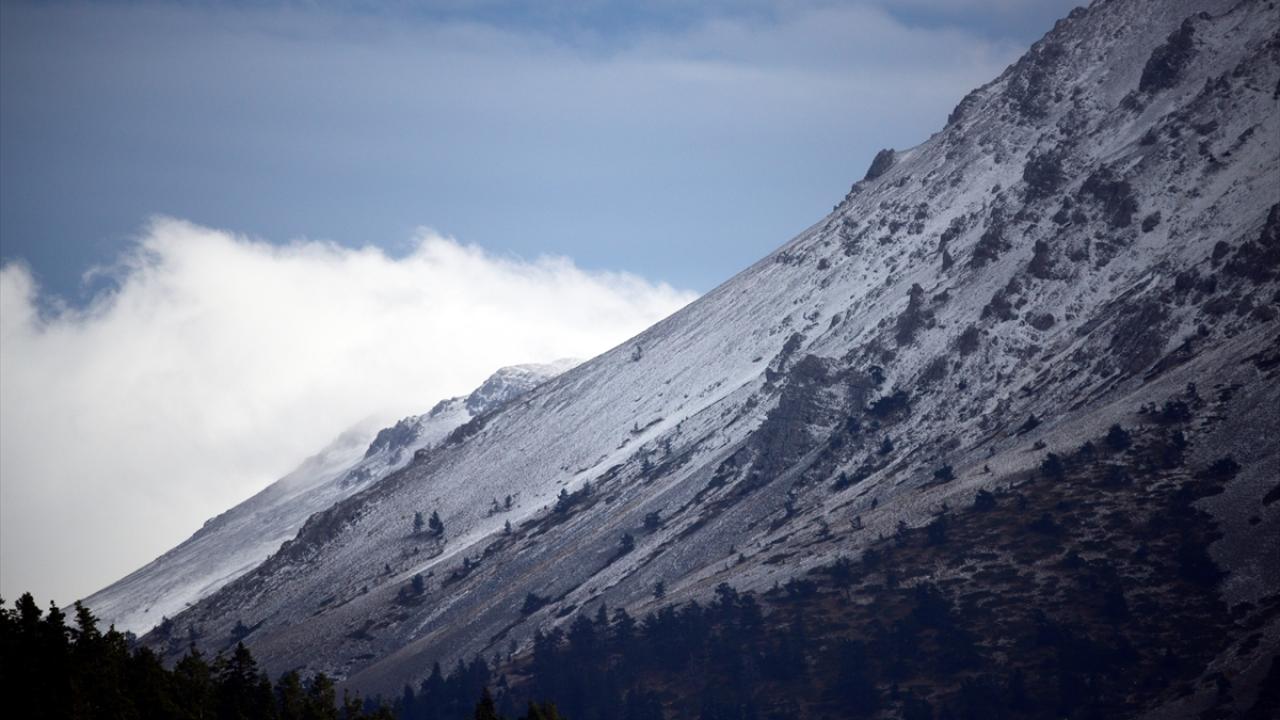 Dağın zirvesinde oluşan kar ve bulutlar, güzel görüntüler oluşturdu.
