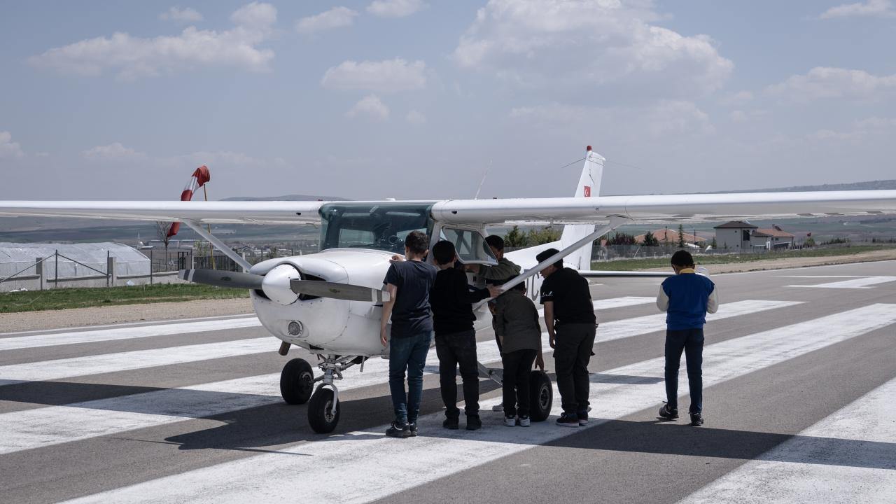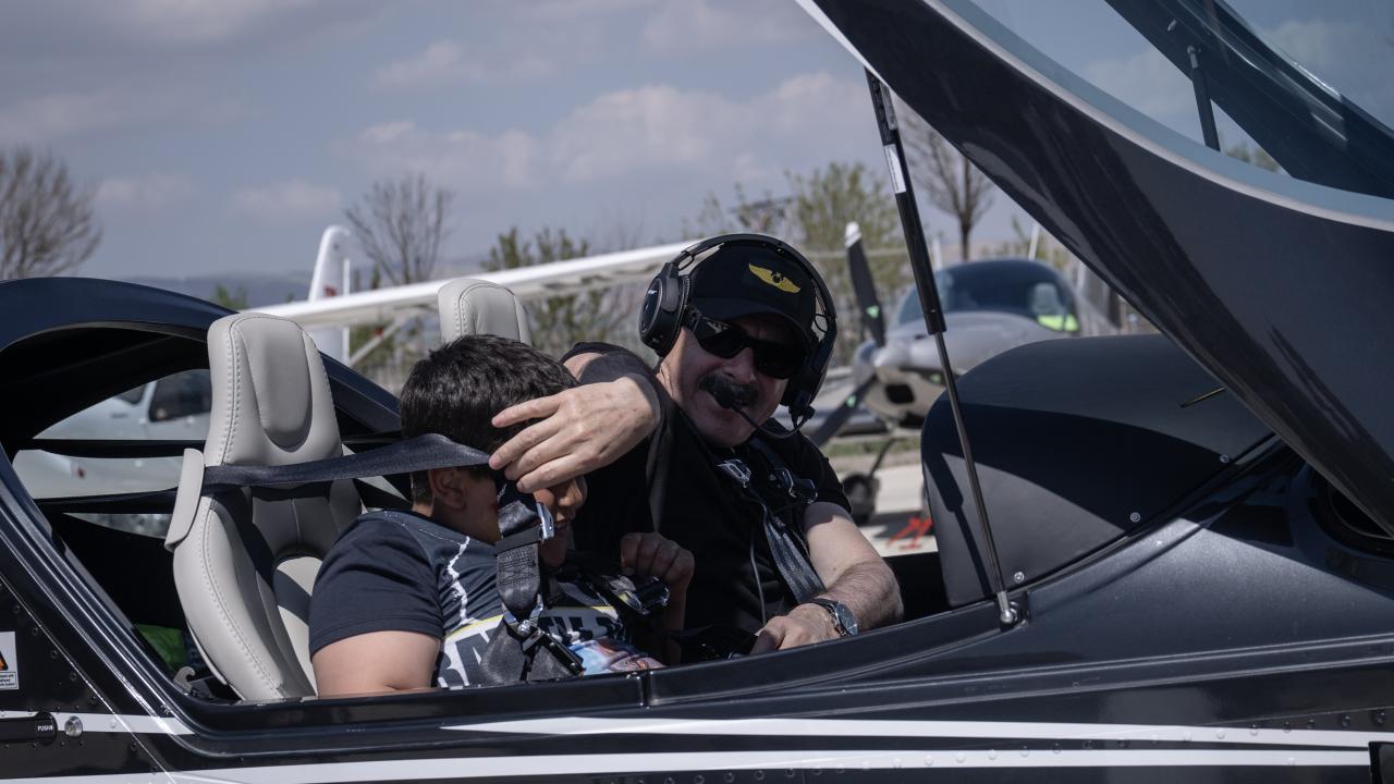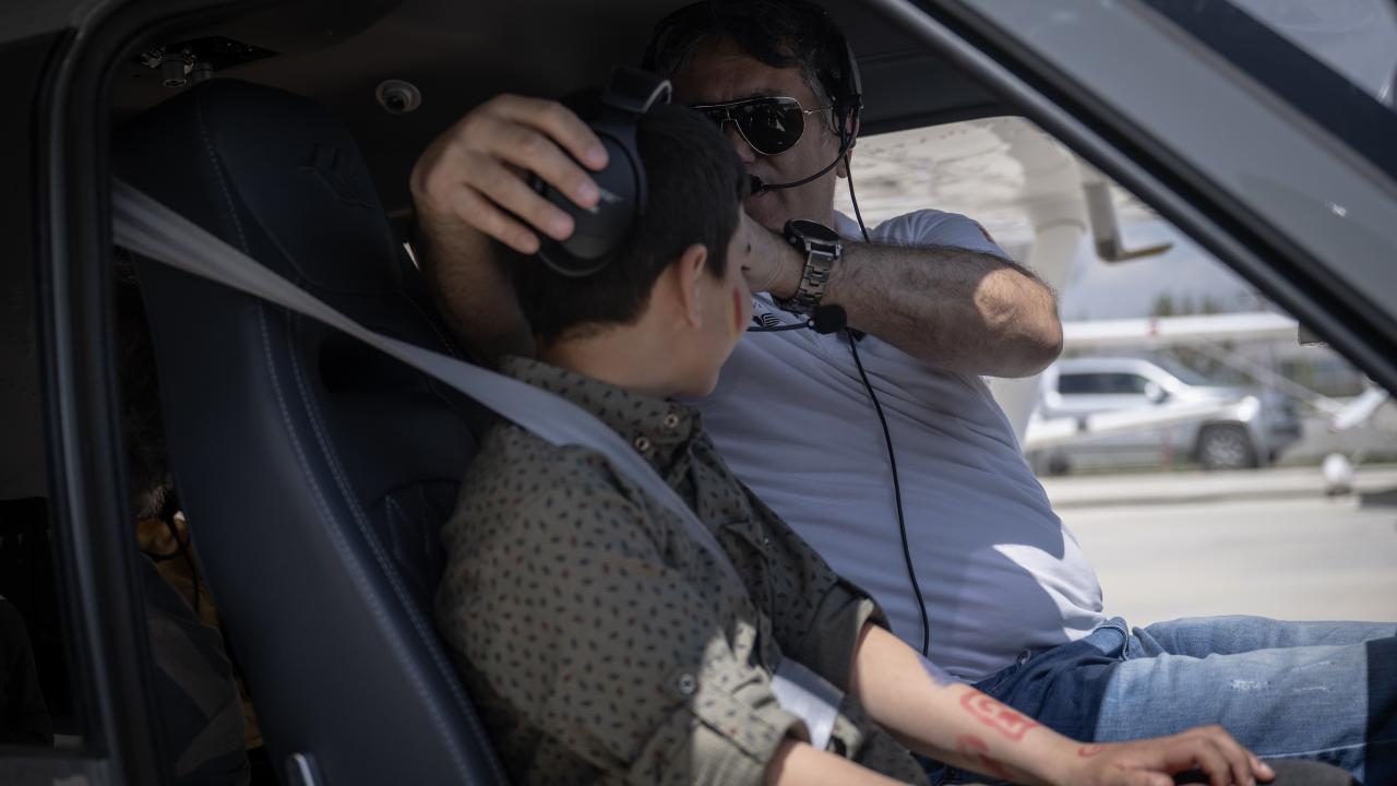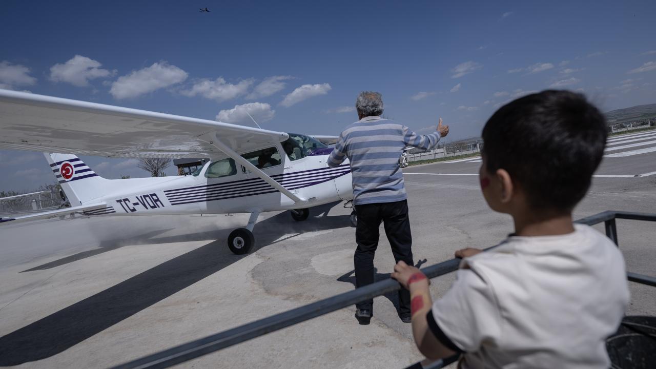 Yuvada kalan 14 çocuk, 23 Nisan Ulusal Egemenlik ve Çocuk Bayramı kutlamaları kapsamında Ankara'nın Polatlı ilçesinde gerçekleştirilen etkinlikte uçağa binip Başkent'i gökyüzünden görme fırsatı buldu. İlk kez uçağa binen çocuklar, pilotluk deneyimini de tattı.