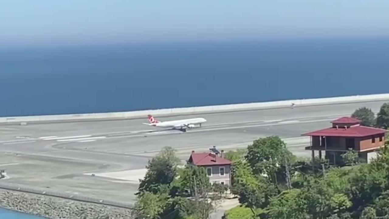 Türkiye'nin 2'nci, dünyanın 5'inci deniz üzerindeki havalimanı olan Rize-Artvin Havalimanı’na açılış töreni öncesi THY’ye ait ilk tarifeli ‘Rize Artvin’ adlı yolcu uçağı, iniş gerçekleştirdi.