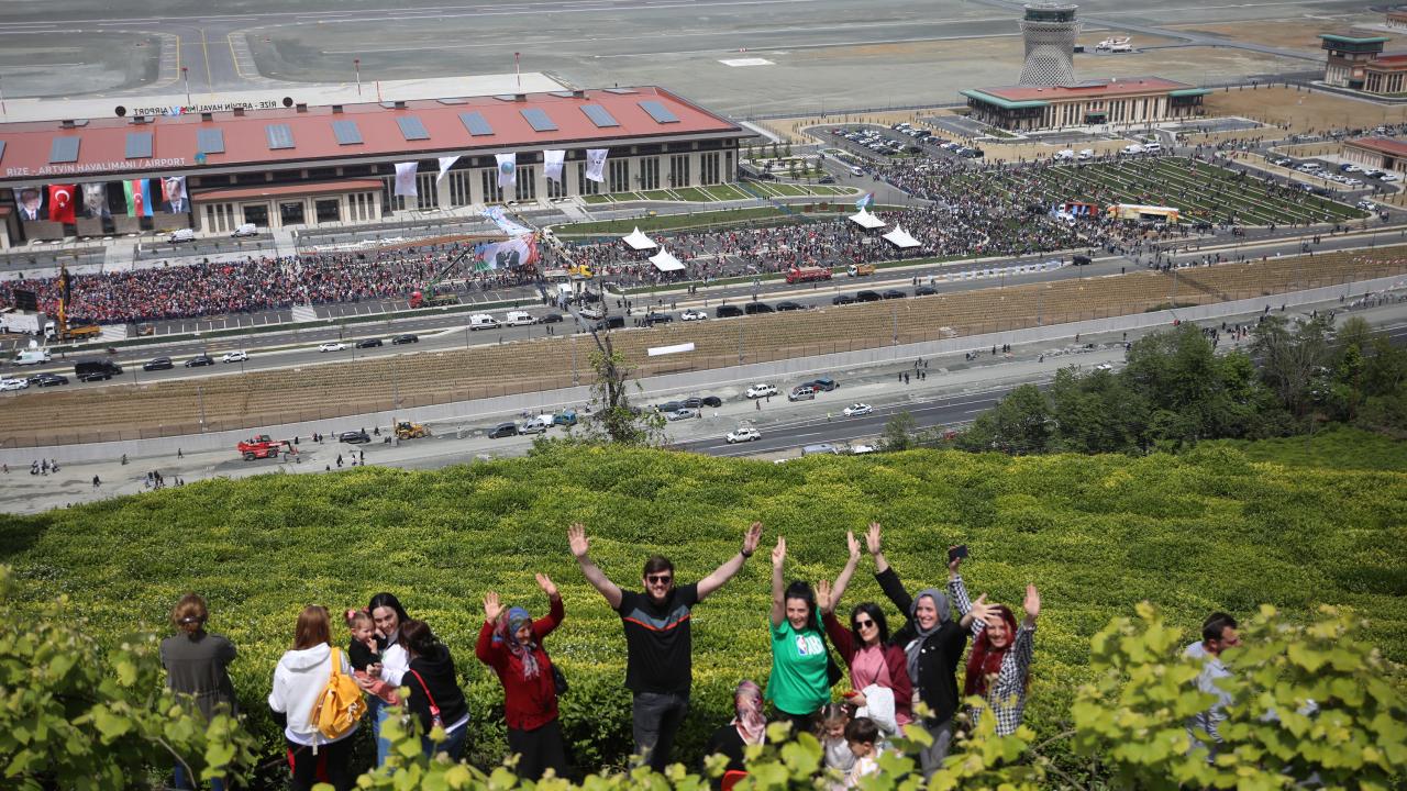 Havalimanı pistini gören tepelerdeki çay bahçelerine çıkan vatandaşlar, THY`ye ait TK2538 sefer sayılı gövdesine `Rize-Artvin` yazılı tarifeli uçağın ilk inişini büyük bir heyecanla izleyenler o anları cep telefonlarıyla kayda aldı.