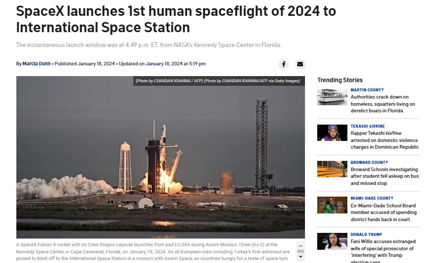 NBC Miami`de 2024 yılının ilk insanlı uzay uçuşu olduğu hatırlatılarak, Gezeravcı`nın "Bu, gelecek yüzüncü yılımızın başlangıcı" sözlerine yer verdi.