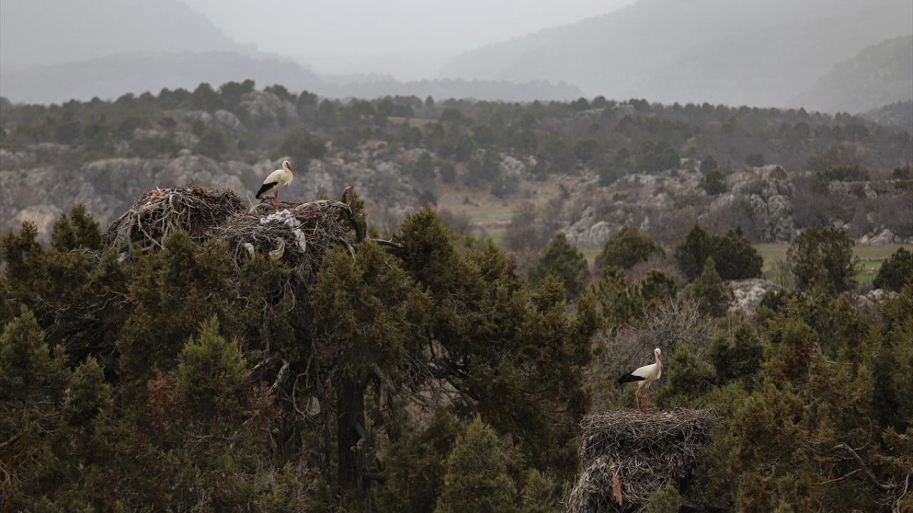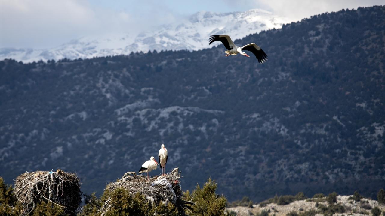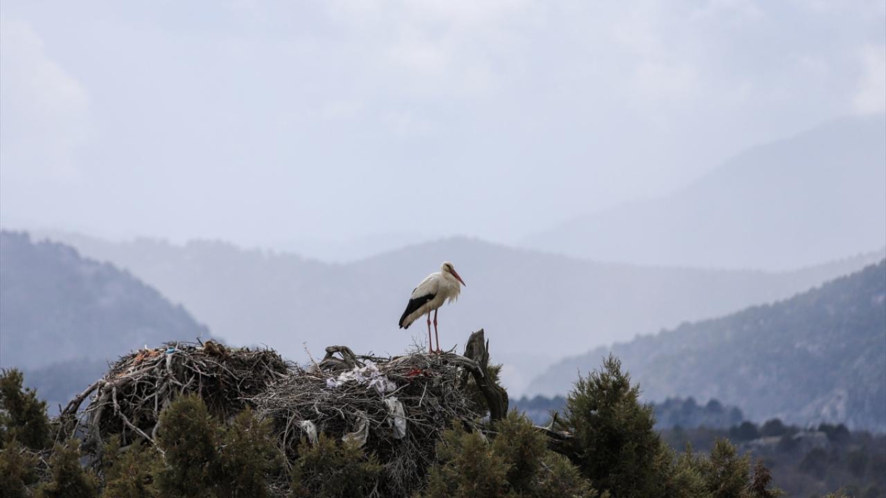 İlkbaharın habercisi leylekler, mart ayı itibarıyla Konya'nın Beyşehir ilçesine bağlı Adaköy mahallesi Leylekler Tepesindeki yuvalarına gelmeye başladı.