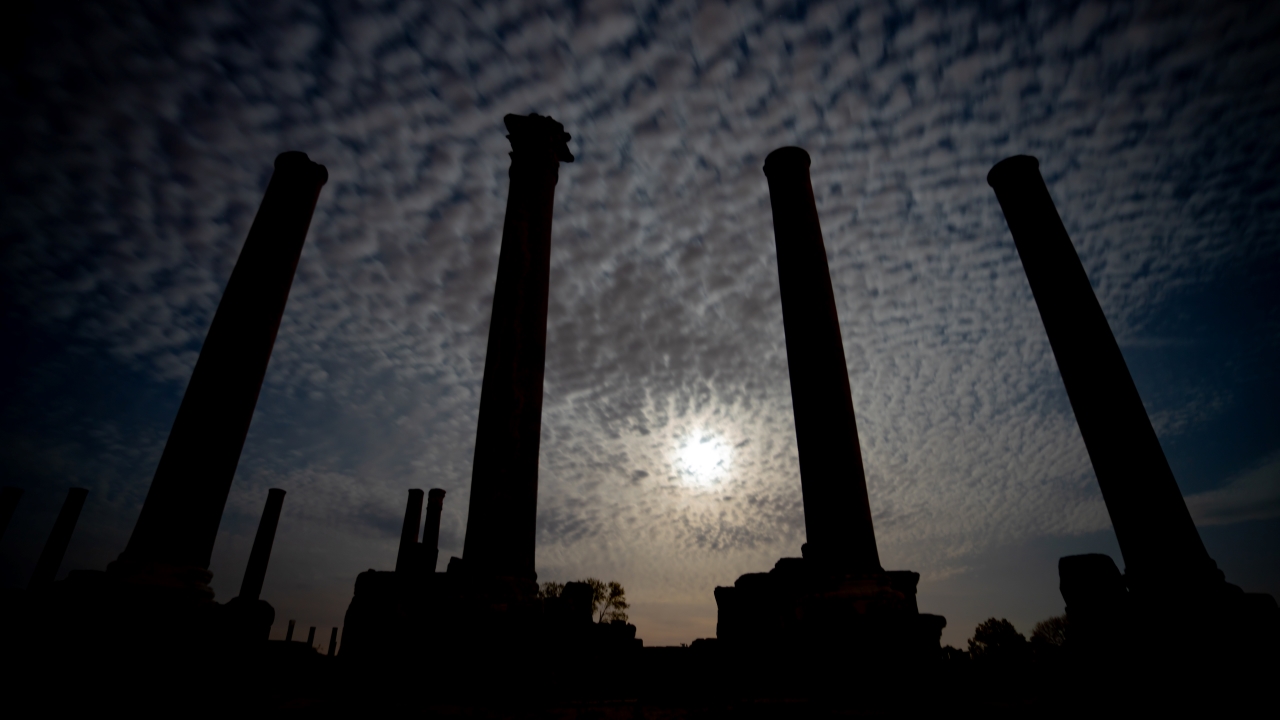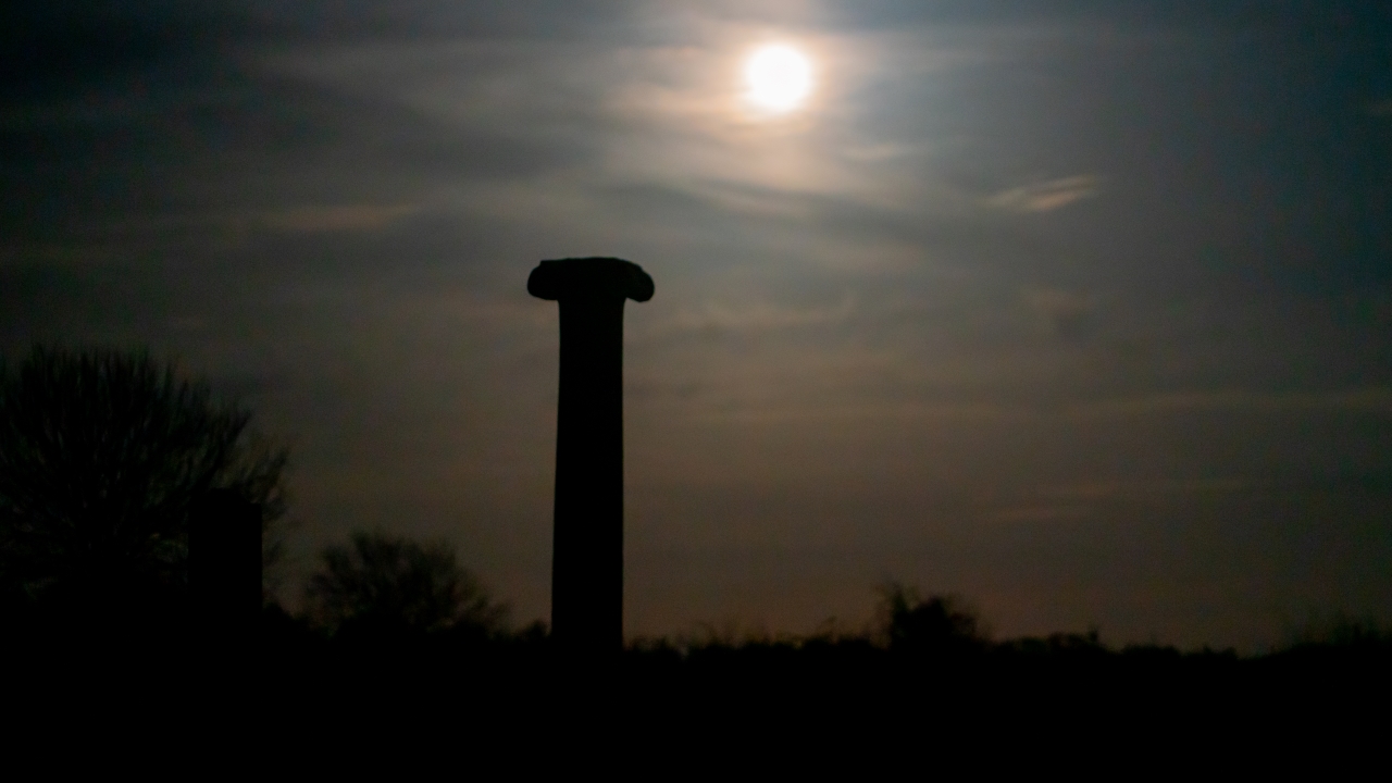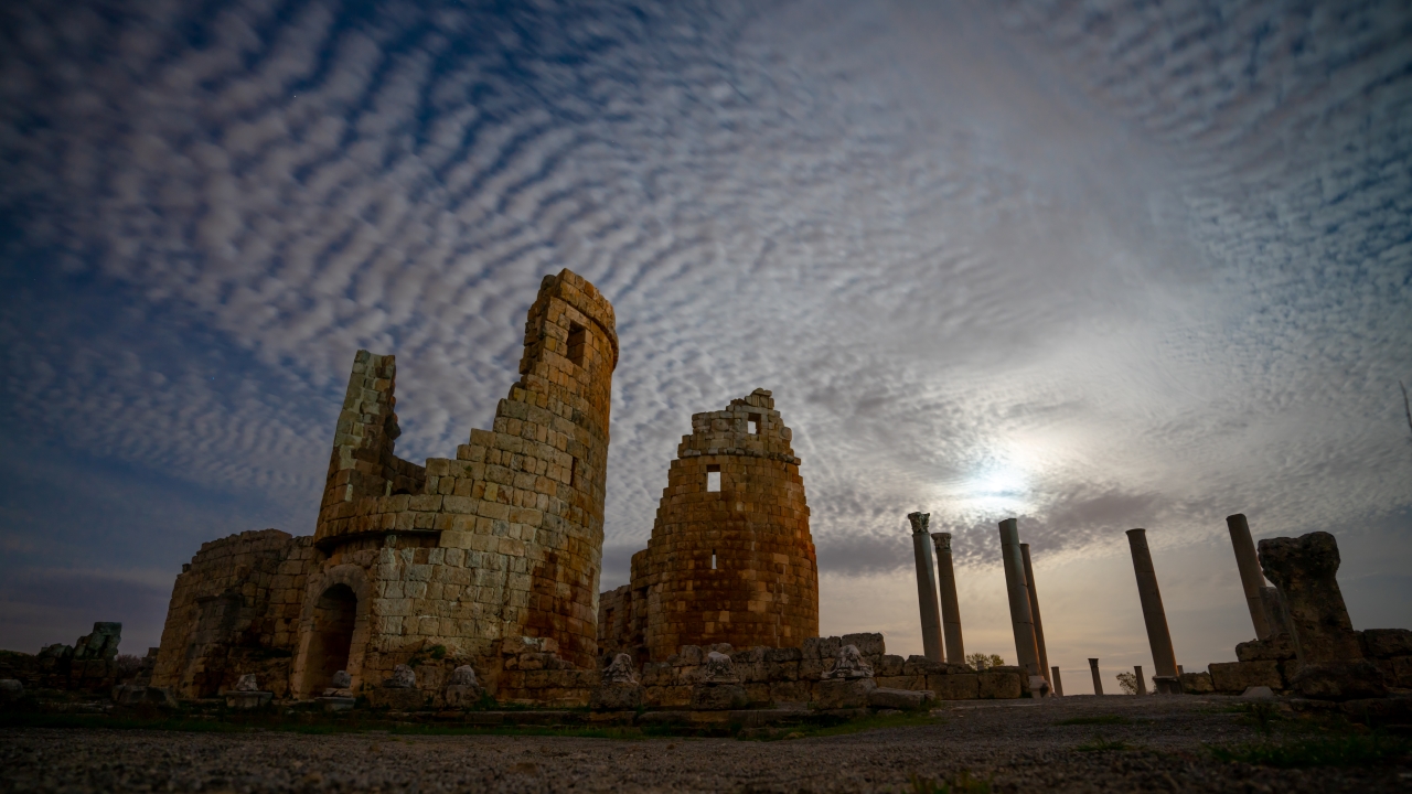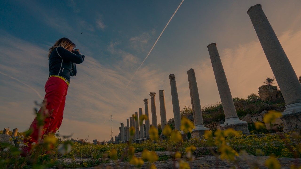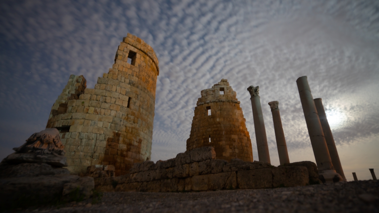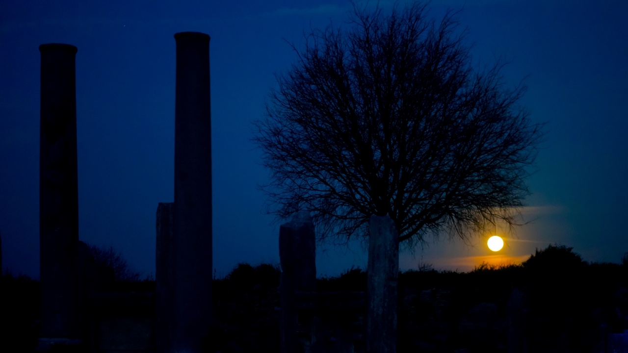 Dolunay`ı Perge Antik Kenti`nden takip eden doğa fotoğrafçılarıysa, bu muhteşem doğa olayıyla tarihi bir karede buluşturma imkanı buldular.