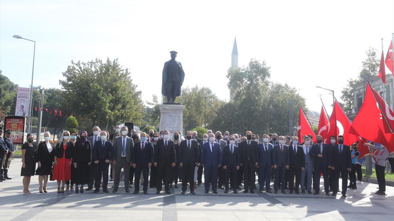 Atatürk Anıtı`nda düzenlenen tören Edirne İl Milli Eğitim Müdürü Önder Arpacı`nın anıta çelenk sunmasıyla başladı.