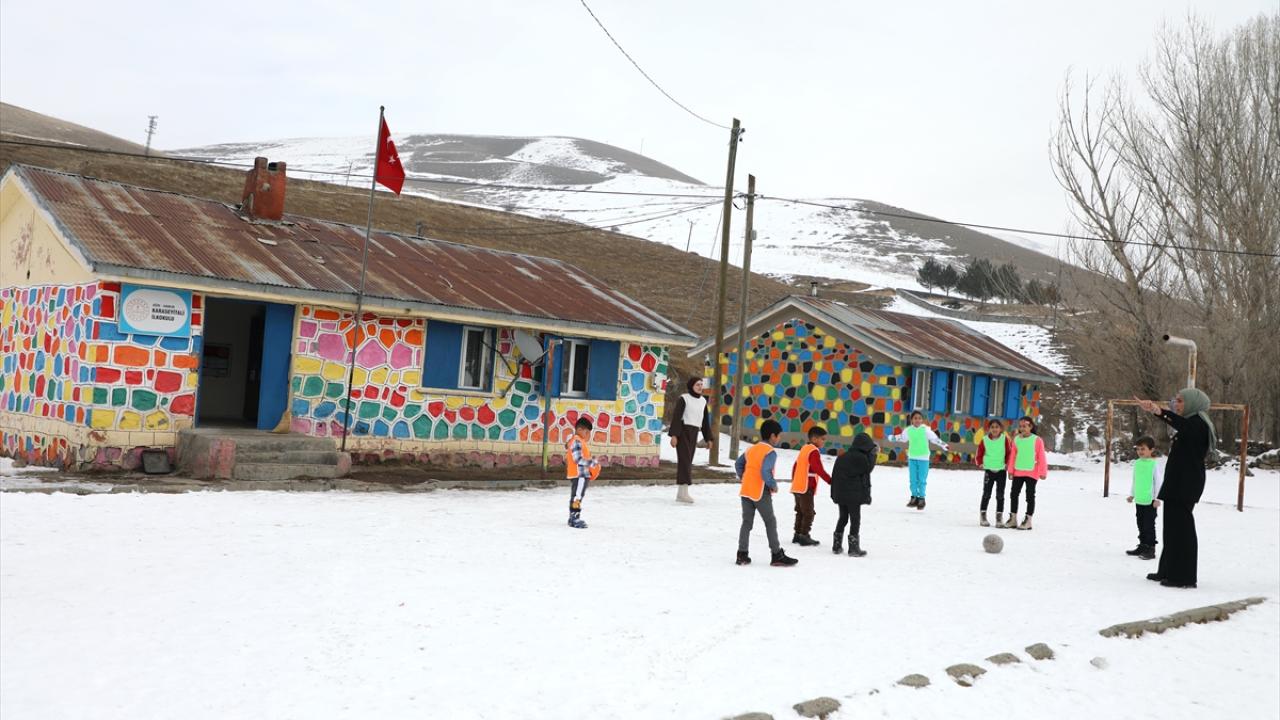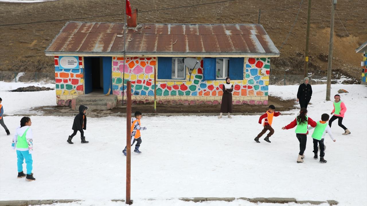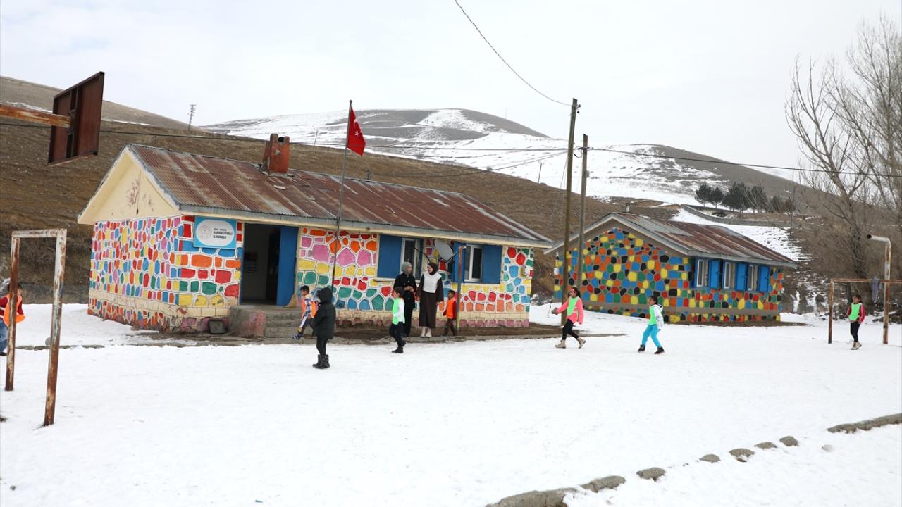 Karla kaplı dağlar arasında yer alan, kışların çetin geçtiği ve ilçenin en uzak yerleşim yerlerinden olan köyde okulun lojmanında kalan öğretmenler, onarımını yapıp boyadıkları okulu güzel bir eğitim yuvasına dönüştürdü.