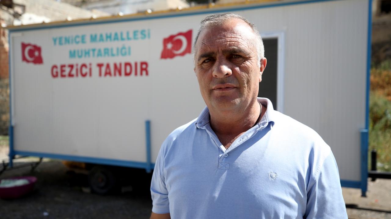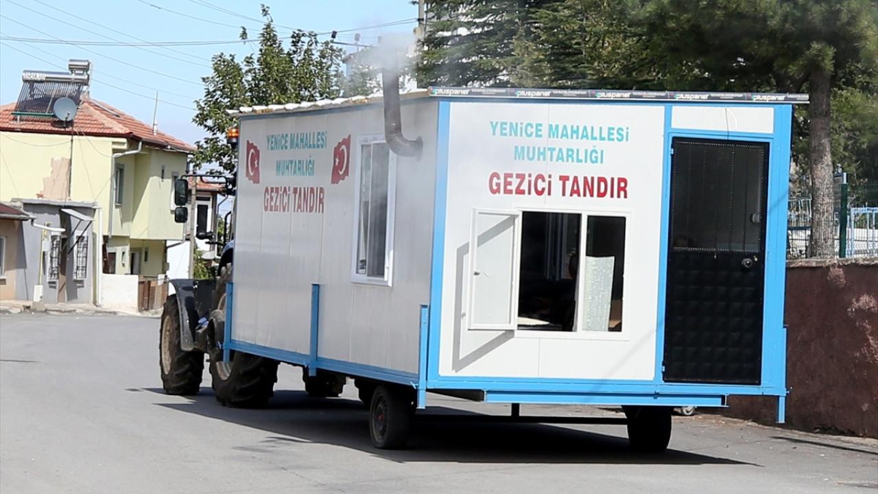"Vatandaşımız tandır için beni arıyor. Ben de bir traktör bulup vatandaşın kapısının önüne götürüyorum. Orada ekmeğini pişiriyor. Bu şekil mahallemize hizmet veriyoruz. Gördüğünüz gibi tekerlekleri var. Traktöre takıyoruz, hangi ablamızın evine gidecekse traktörü oraya çekiyoruz. Böylece, orada hamurunu yoğuruyor, ekmeğini yapıyor. Bu gezici tandır, seyyar olarak mahallemizin her tarafına gidiyor. Kesinlikle para almıyoruz. İçinde hamur yoğurma makinesi, tahtası, sacı, oklavası gibi her şeyi mevcut. Bu seyyar tandırda çok güzel ortamlar oluyor, kadınlar kaynaşıyor, sohbet ediyor."
