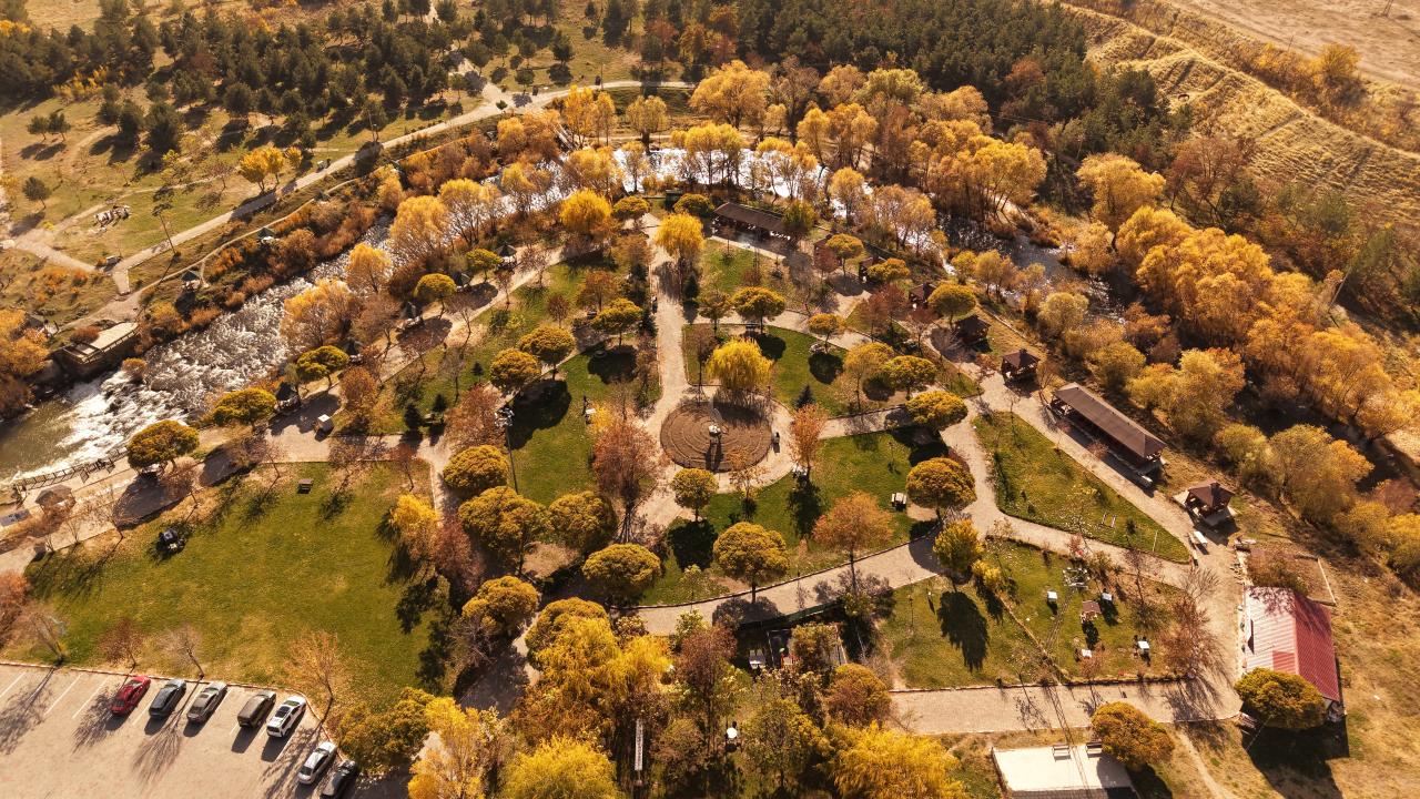 Sarı, turuncu ve kızıl tonların hakim olduğu park, fotoğraf çektirmek isteyen gelin ve damat ile vatandaşları ağırlıyor.