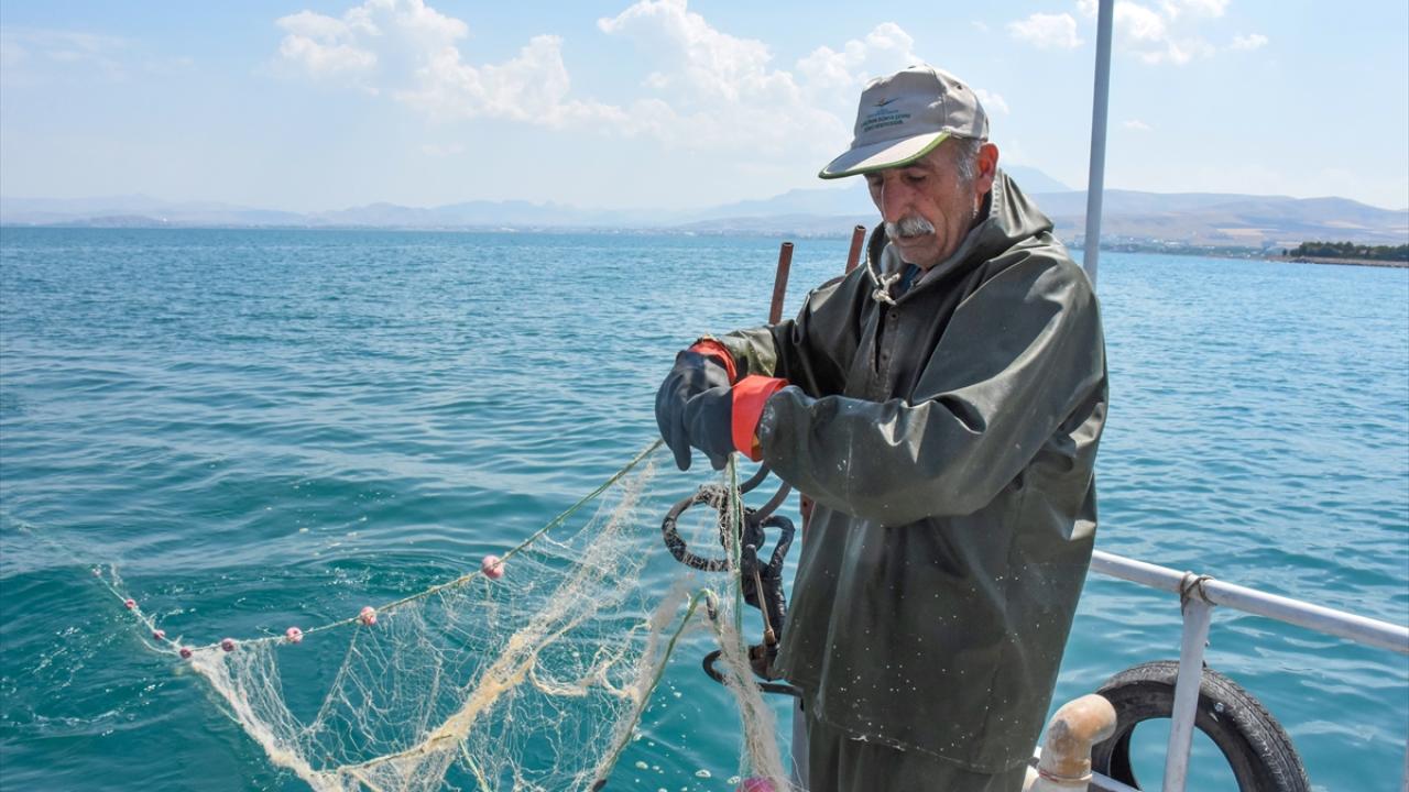 Van Gölü`ne kıyısı bulunan İpekyolu, Edremit, Tuşba, Gevaş, Muradiye ve Erciş ilçeleri ile Bitlis`in Ahlat, Adilcevaz ve Tatvan ilçelerinde günün ilk ışıklarıyla göle açılan balıkçılar, ağlarını sulara bıraktı.